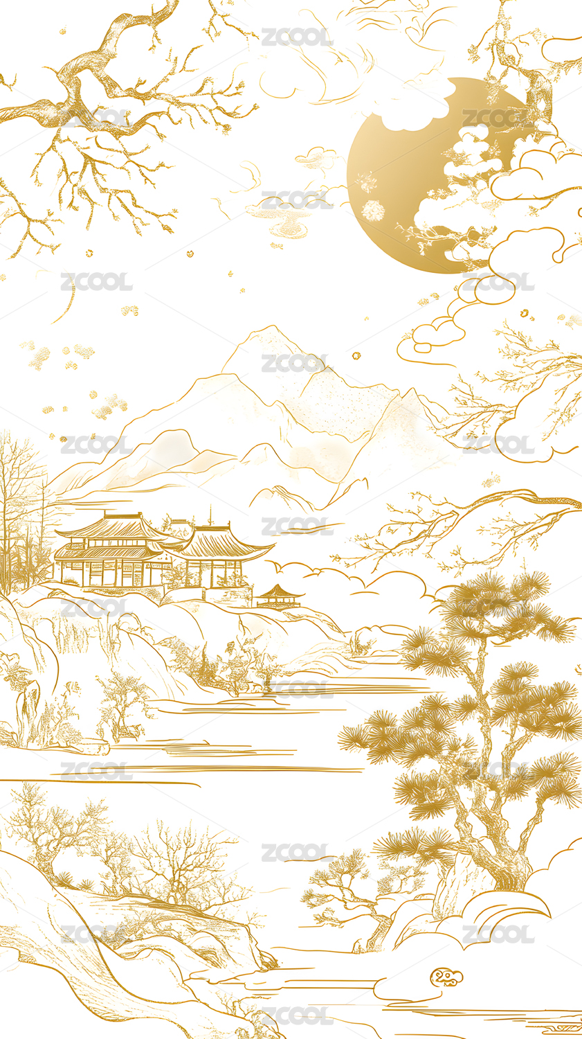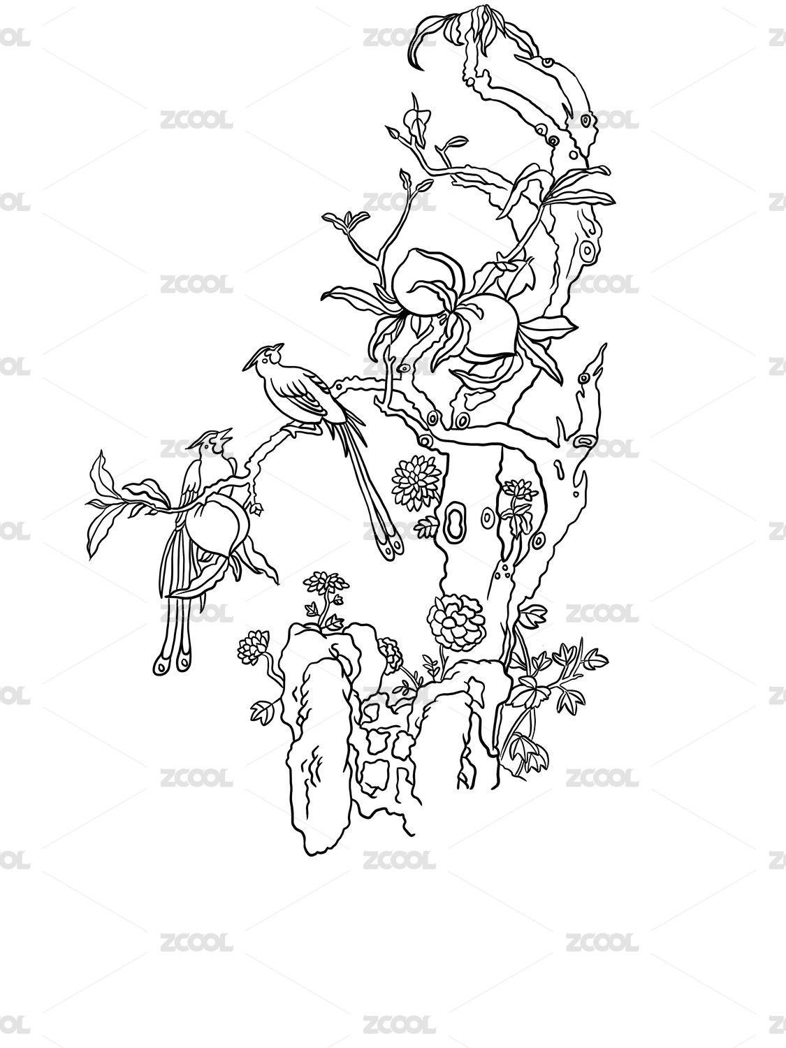 传统的龙纹仙鹤线条意境图案,白色底纹