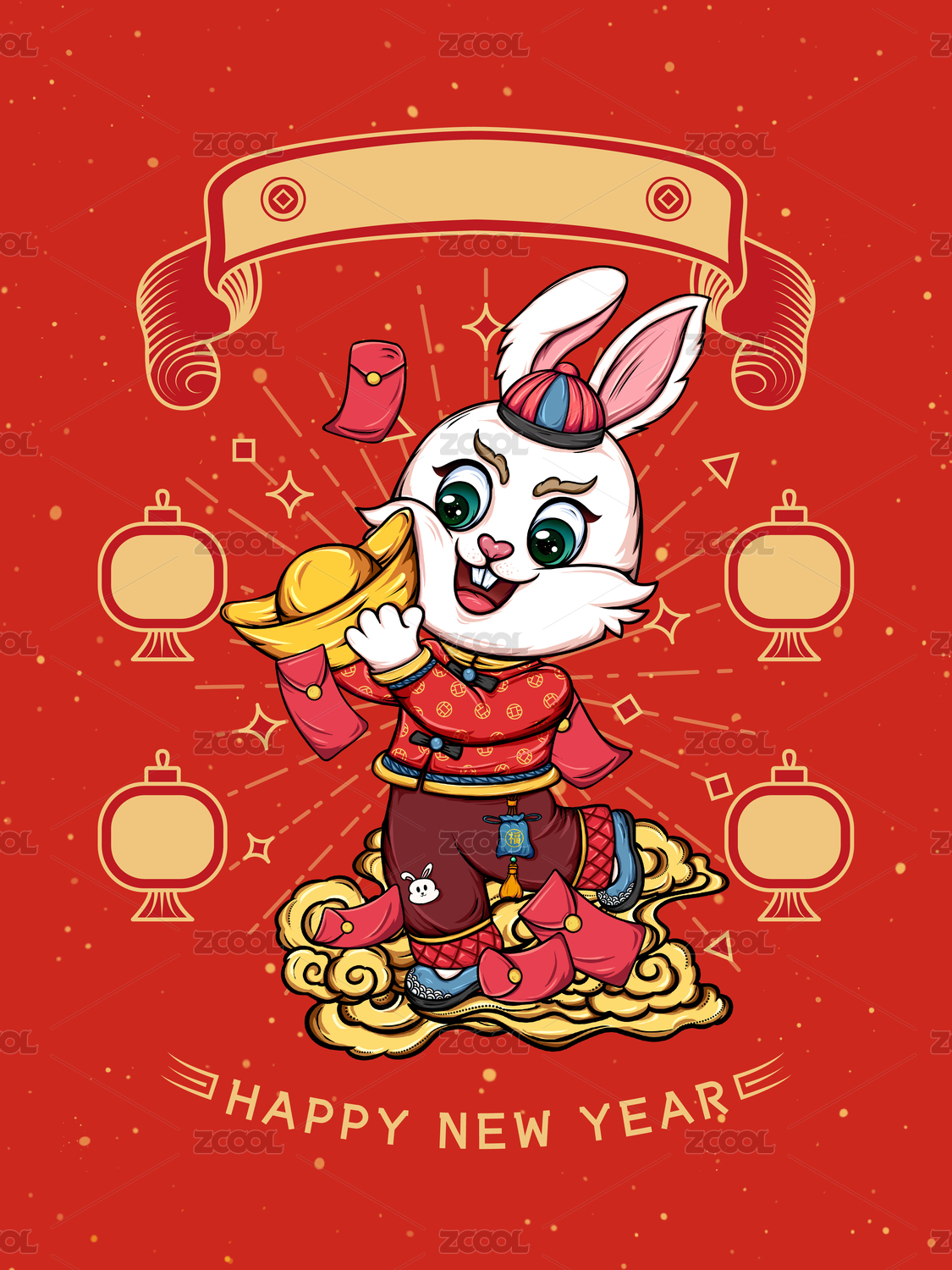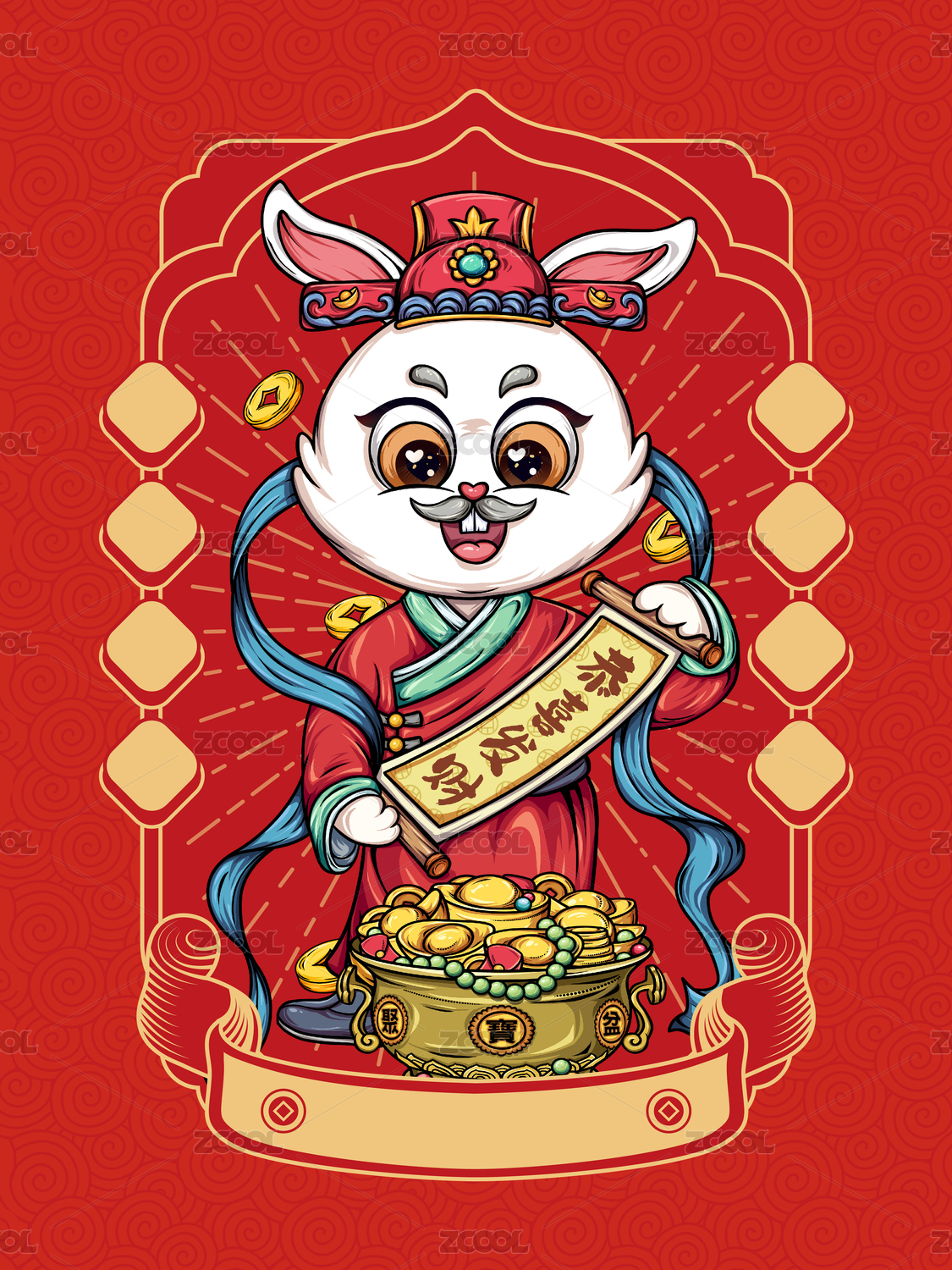兔年插画禄神