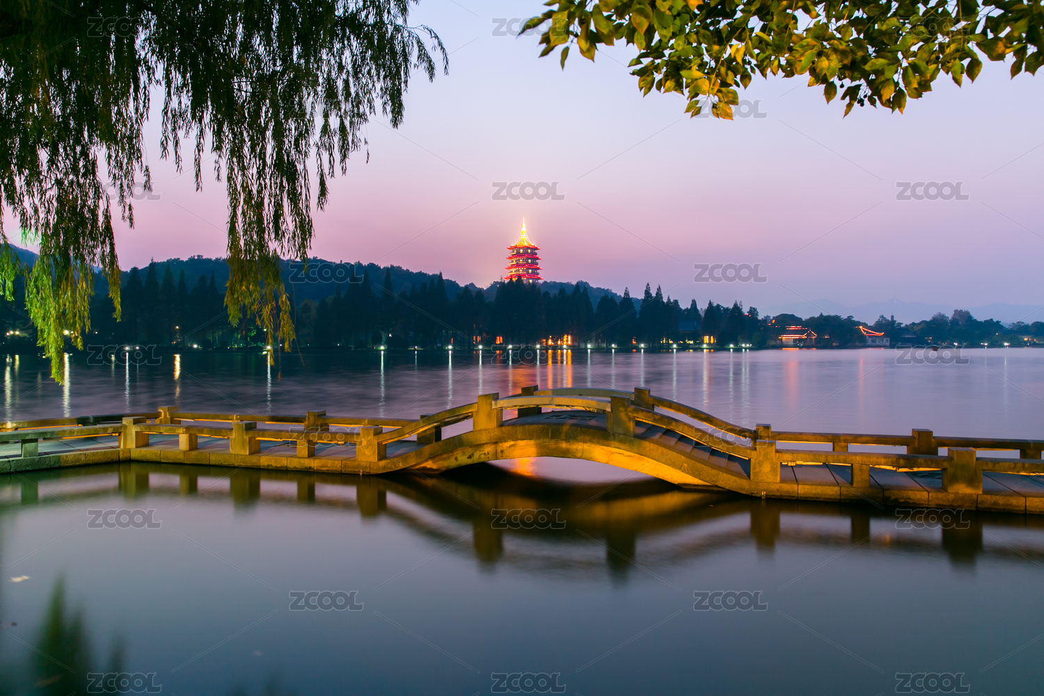 中国浙江杭州西湖雷峰塔夜景
