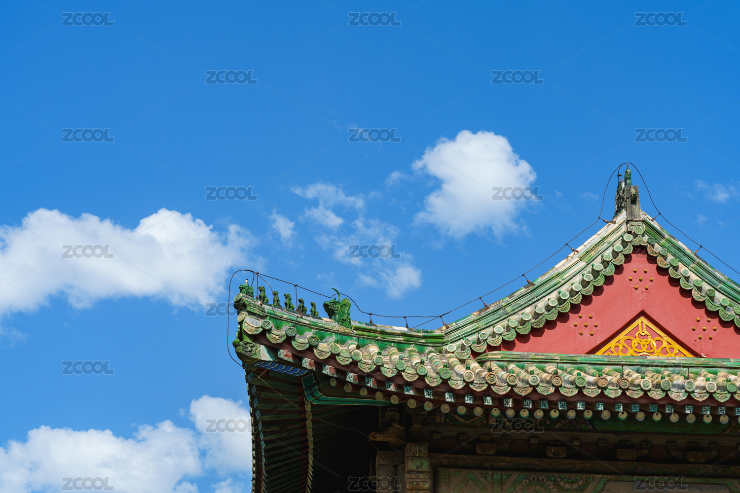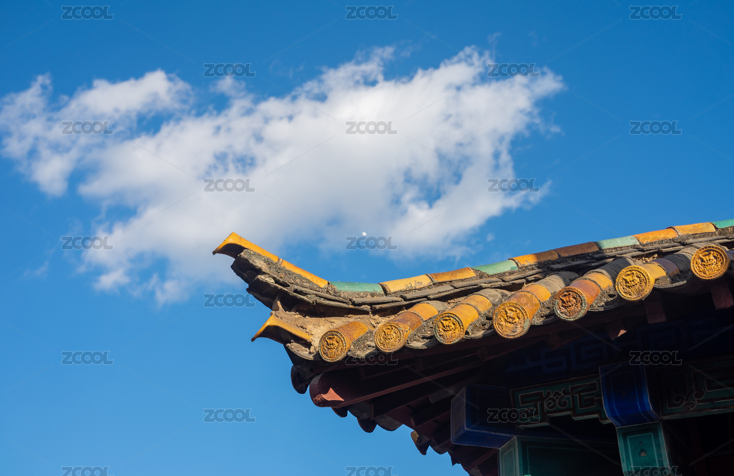 屋檐,屋顶,古建筑,琉璃瓦,天空,蓝天,云,清昭陵,昭陵,中国