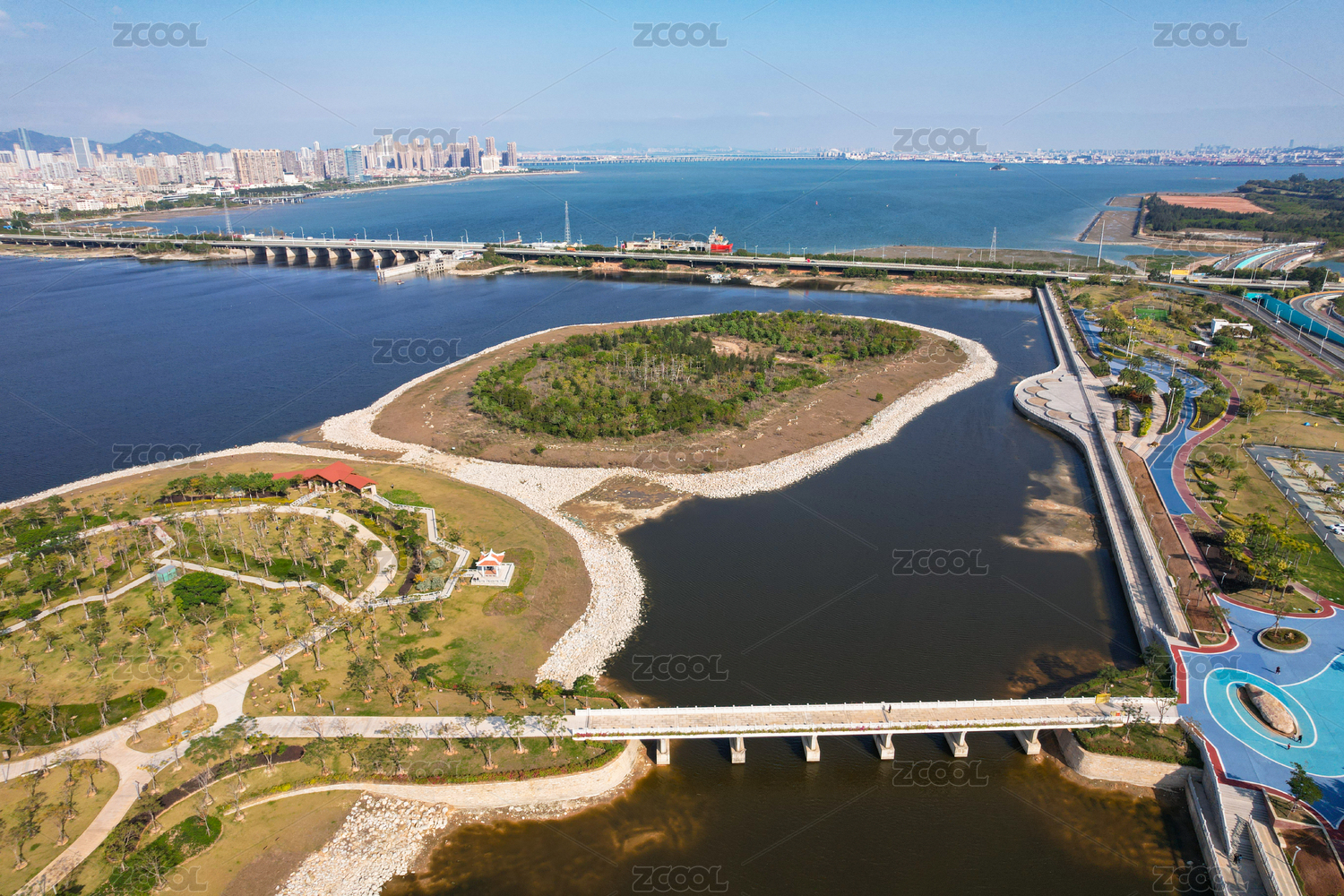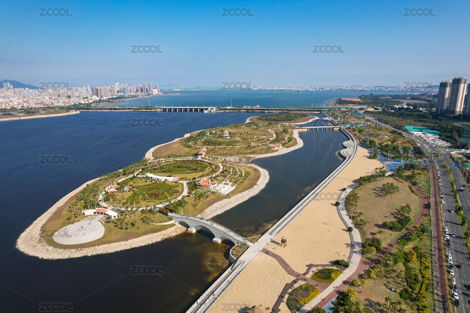 中国广东深圳前海桂湾公园出海口欢乐港湾全景航拍