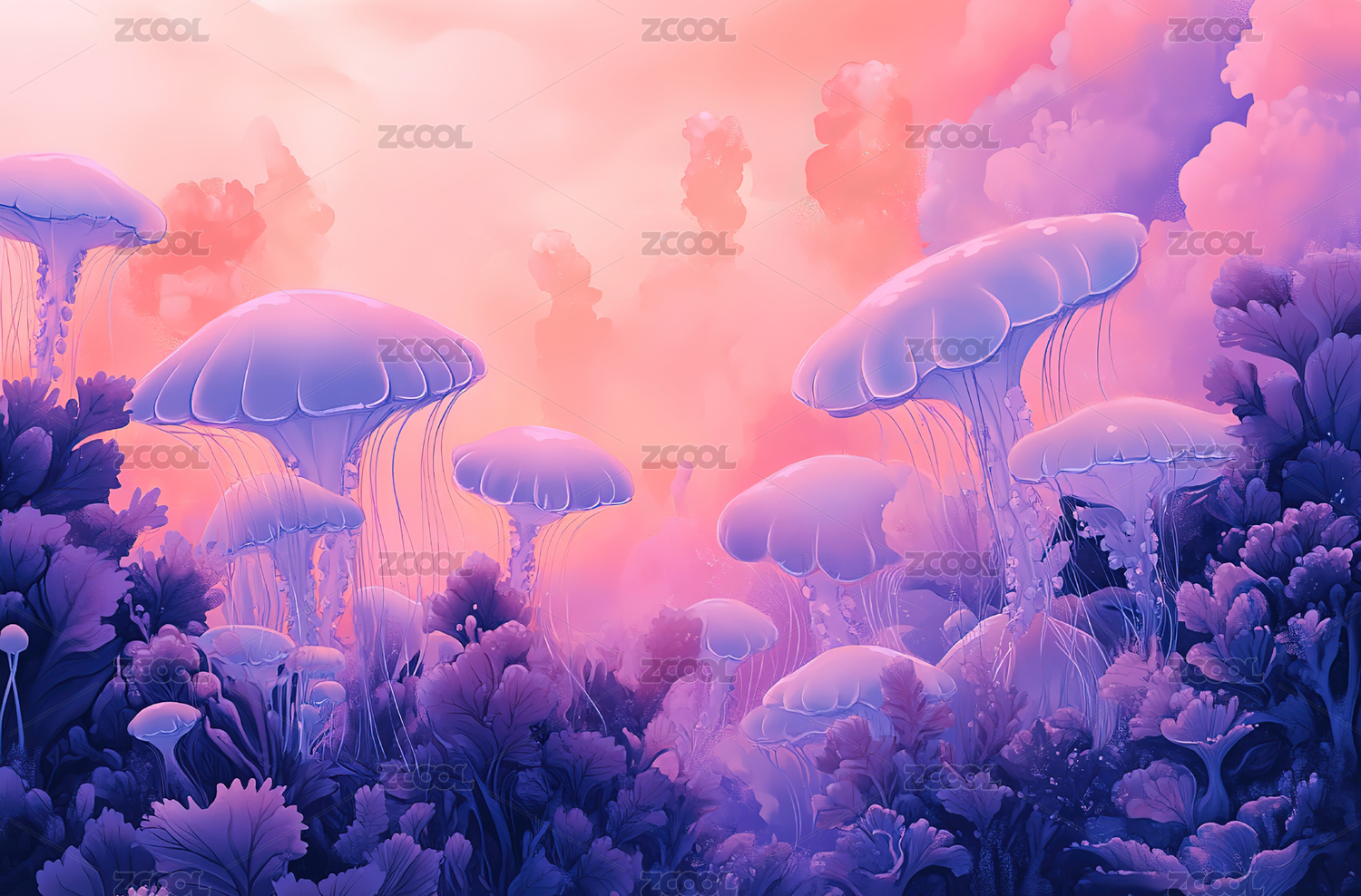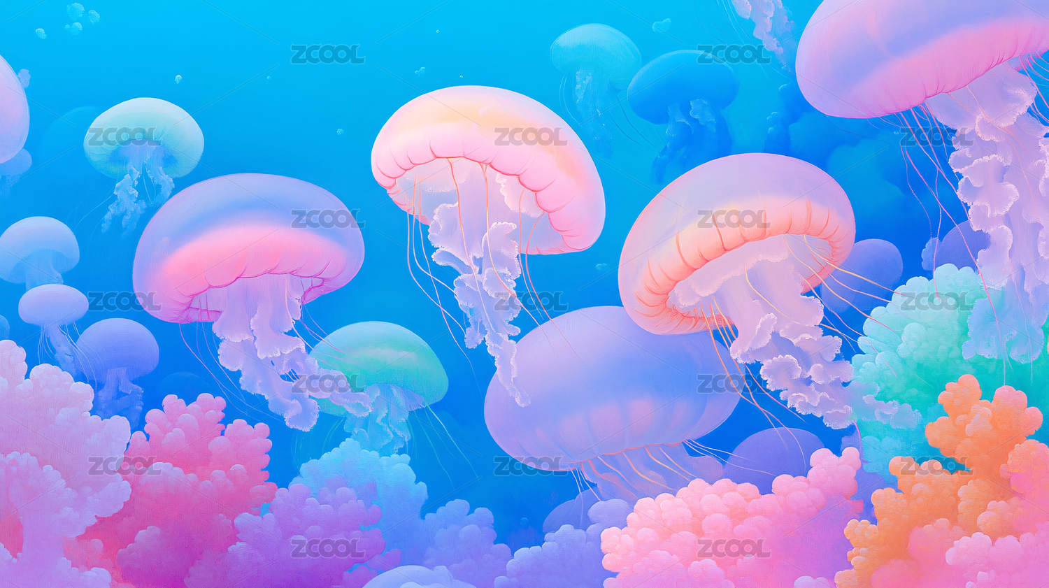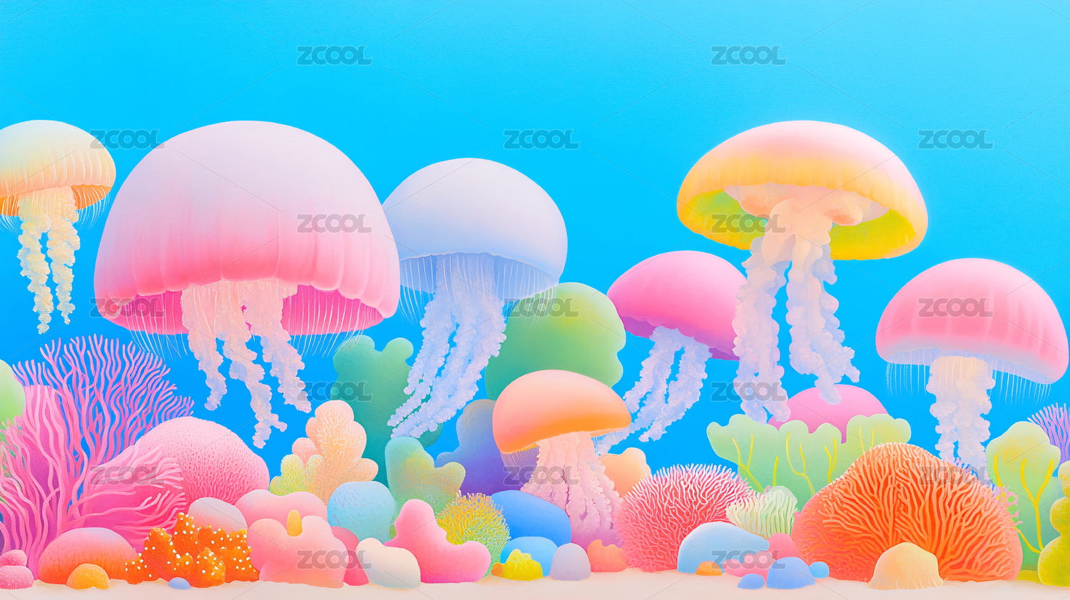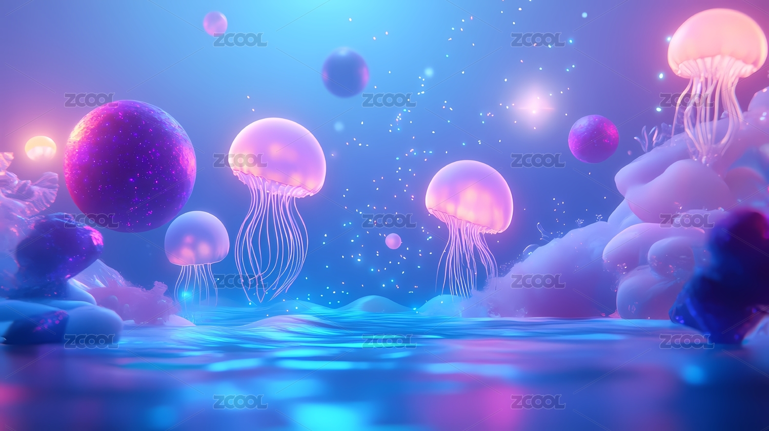 海洋,海底,3D,海底世界,珊瑚,水母,背景,壁纸,素材,梦幻