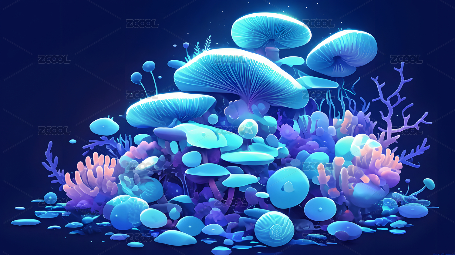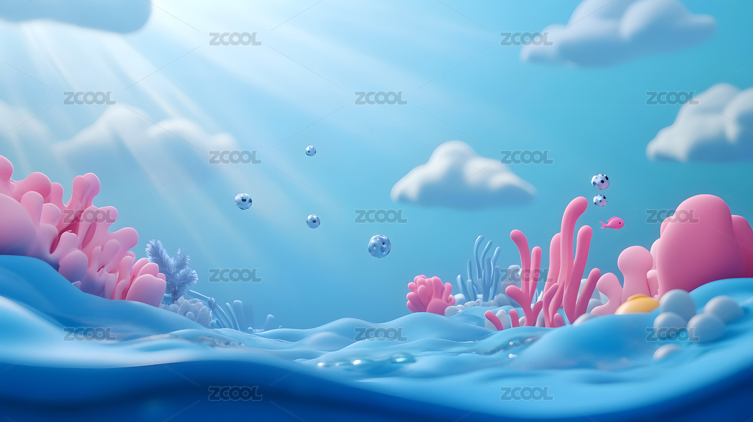 海底世界3D海洋生物珊瑚梦幻唯美自然背景