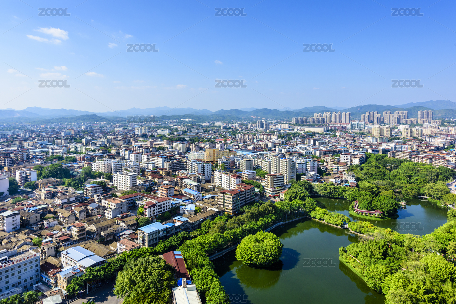 中国广东潮州市潮州古城和韩江两岸建筑航拍