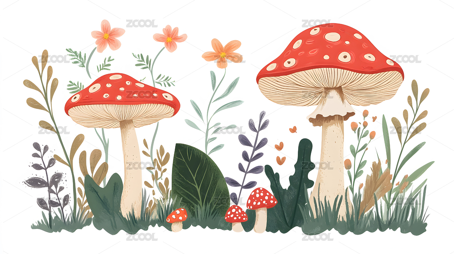 蘑菇,食物,美食,元素,合集,纯色背景,菌菇,植物
