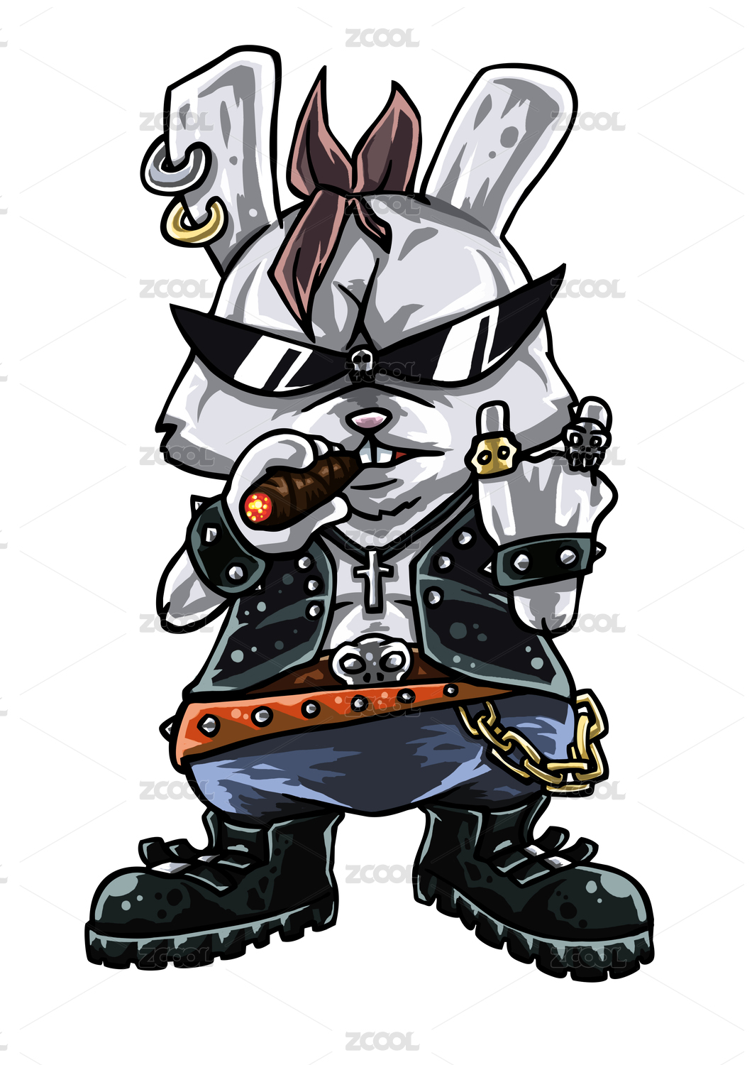 美式潮流矢量风格兔子T恤服装图案印花插画
