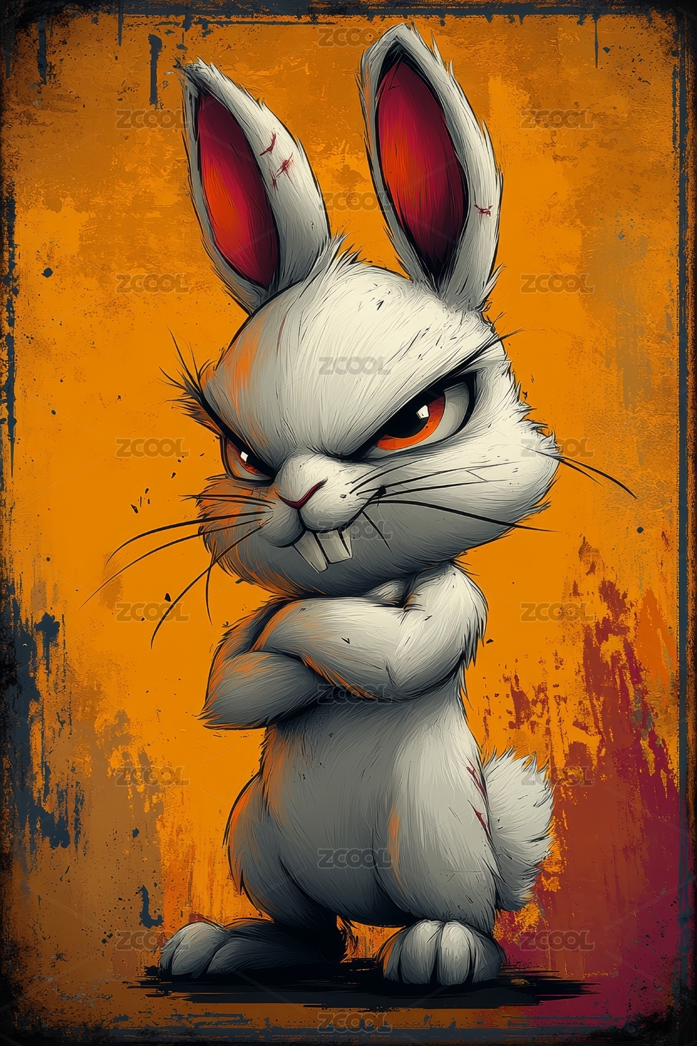 卡通,兔子,愤怒,可爱,毛茸茸,粉红色,怪物,邪恶,生气,牙齿