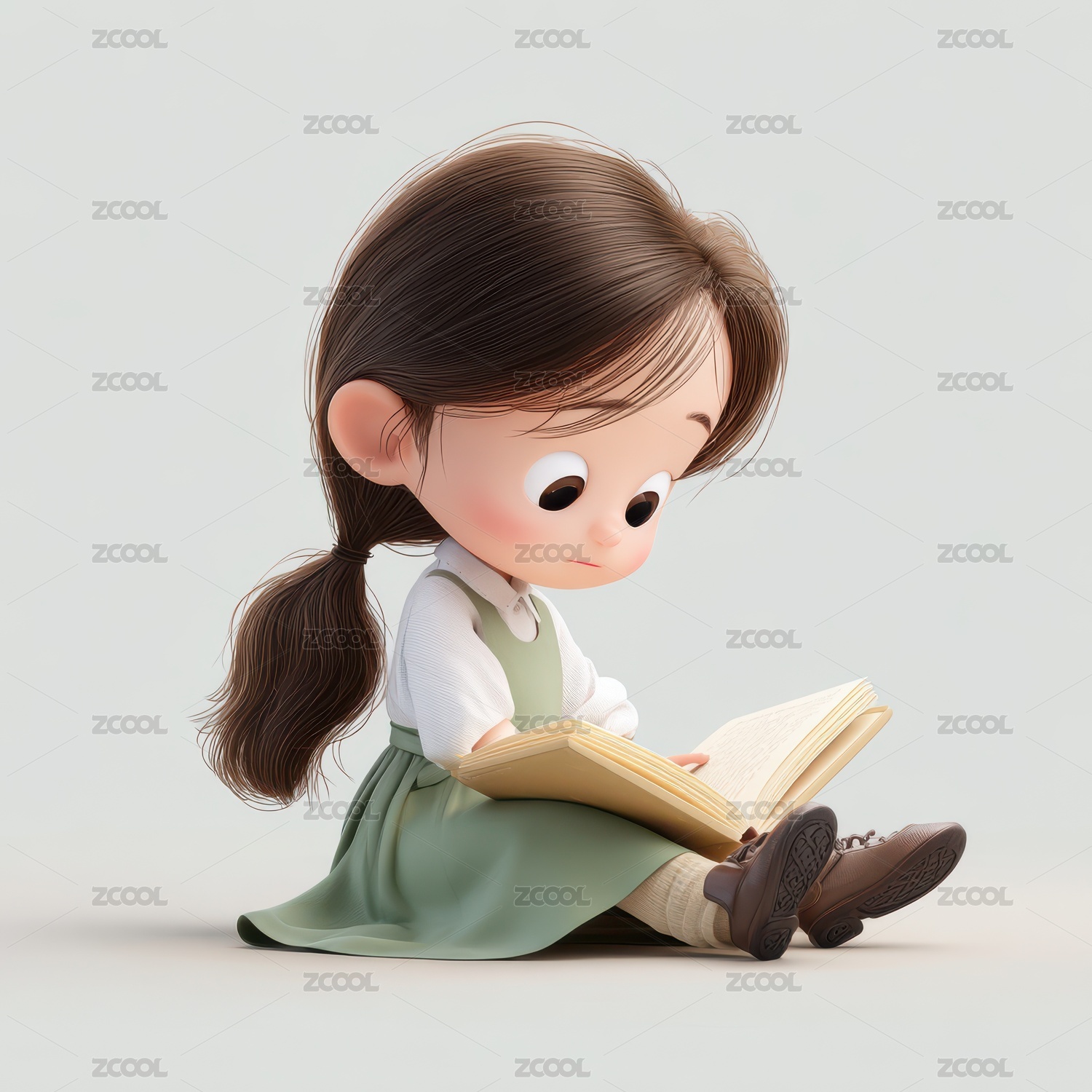 3D卡通女孩读书小元素