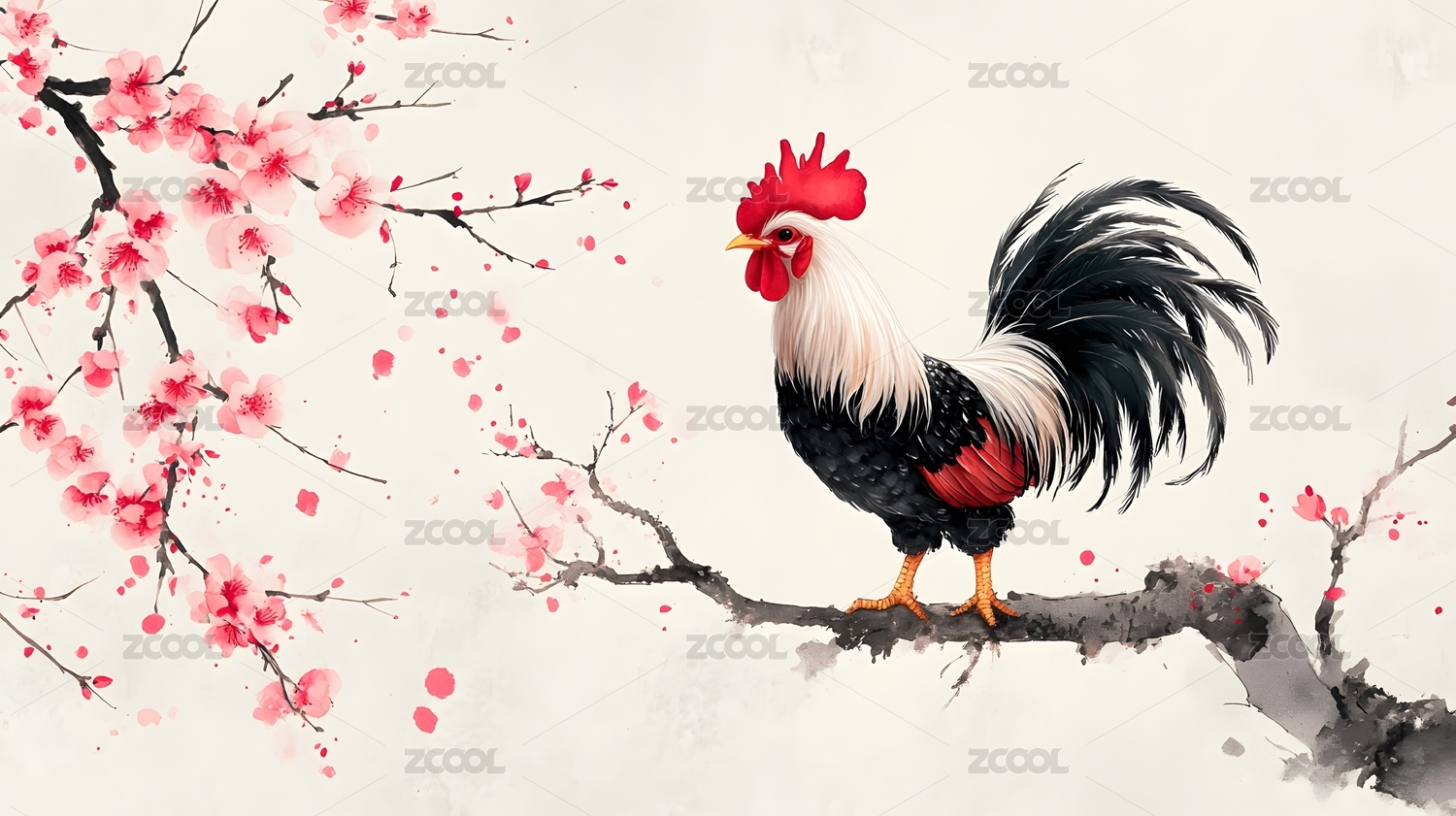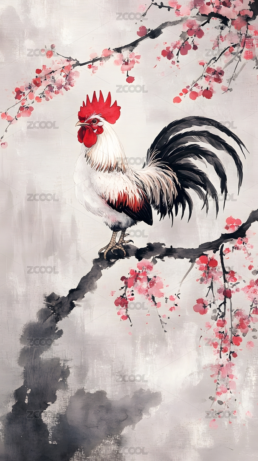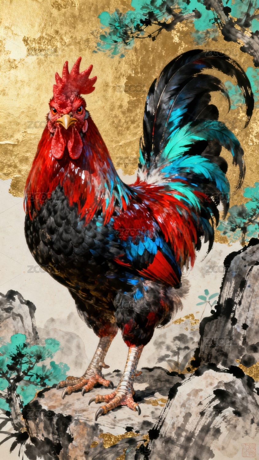 雄鸡,公鸡,鸡,家禽,写意画,中国画,传统绘画,国画,艺术,绘画