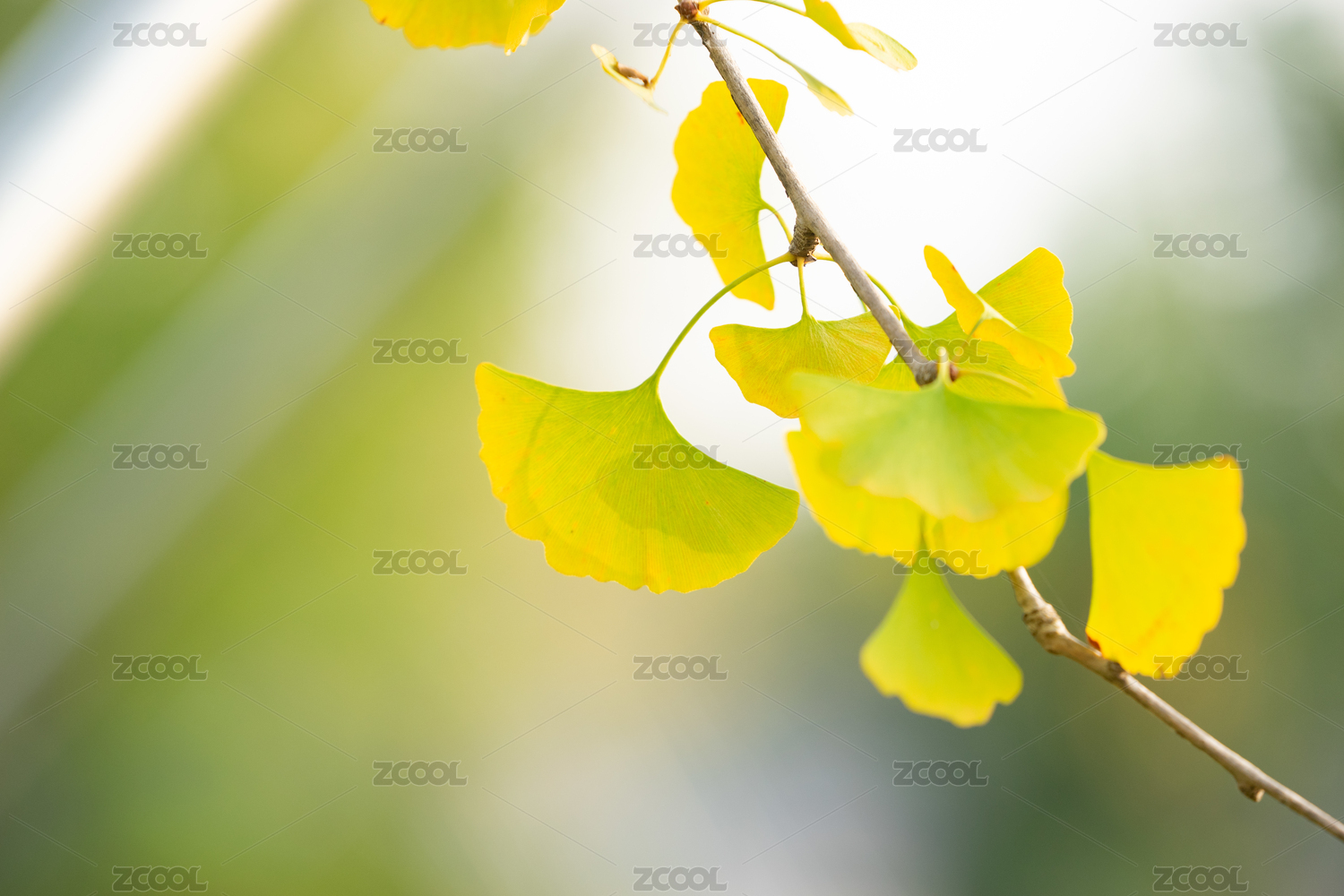 冬日枝头上一片片已经黄透金黄的银杏叶