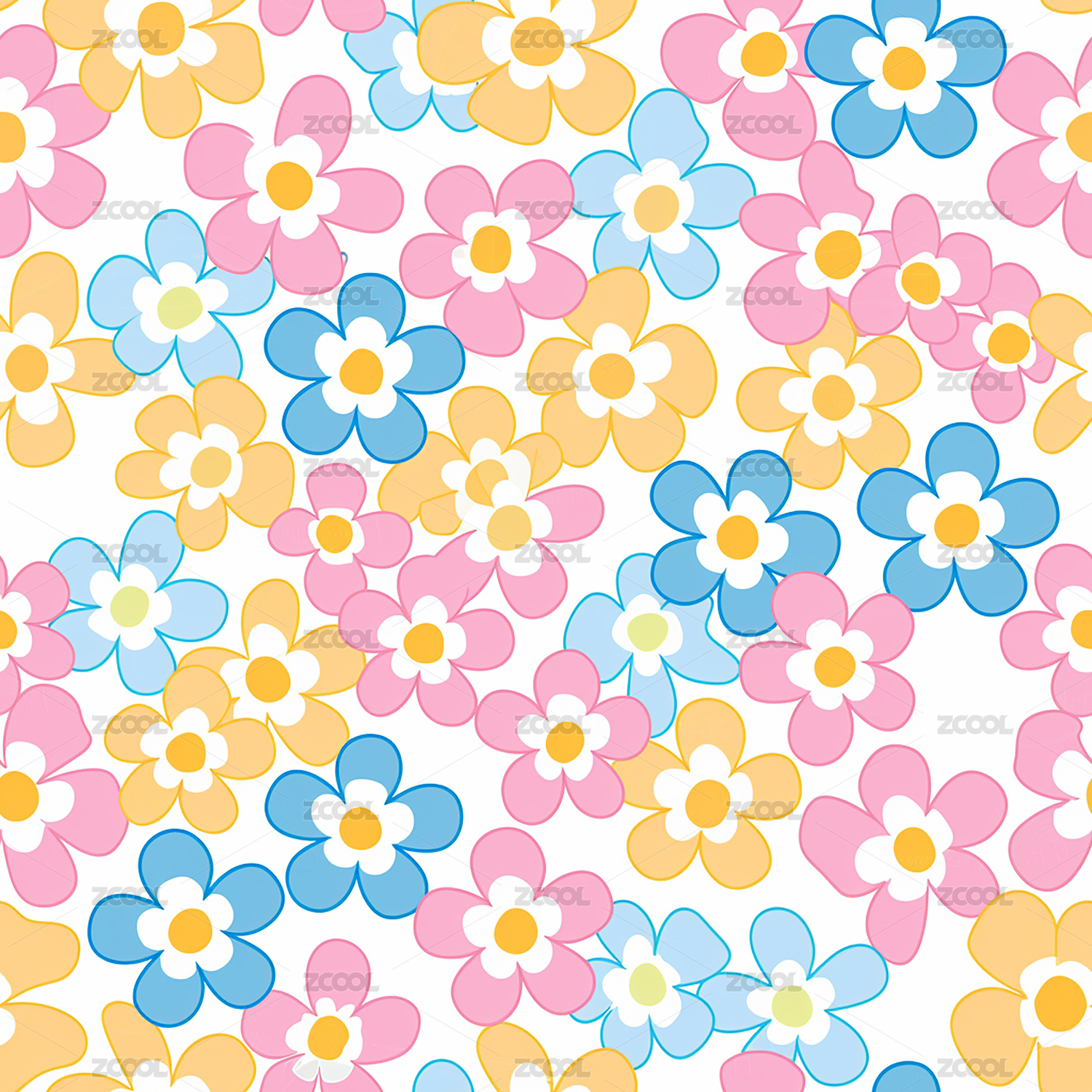 彩色线条花卉重复无缝图案纺织品装饰背景