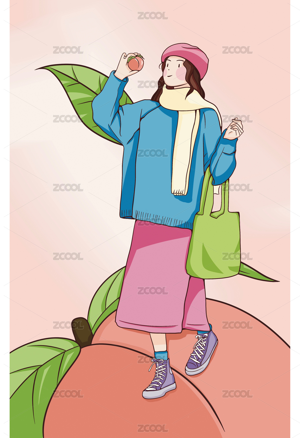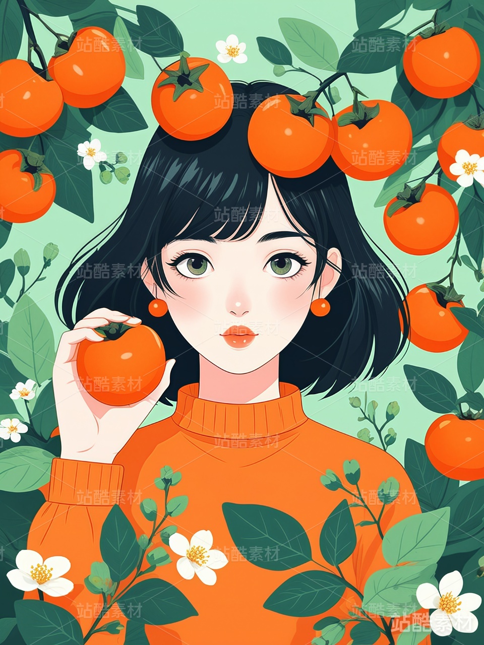 水果女孩-柿子,柿子七月小枣八月梨,九月