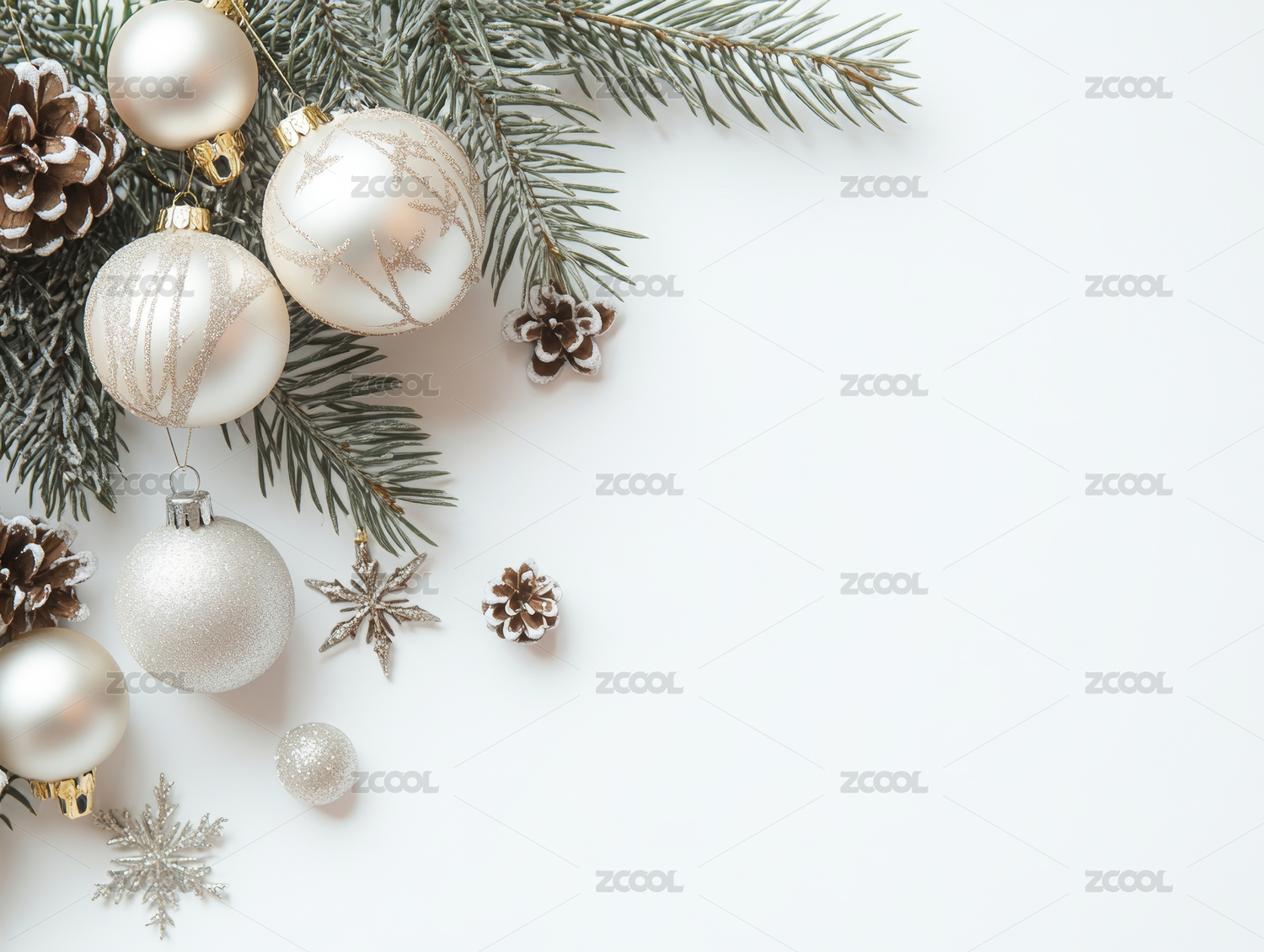 正上方白色背景的圣诞装饰照片