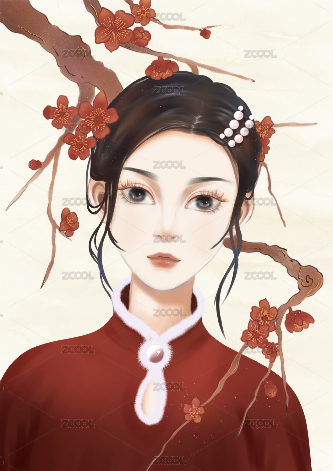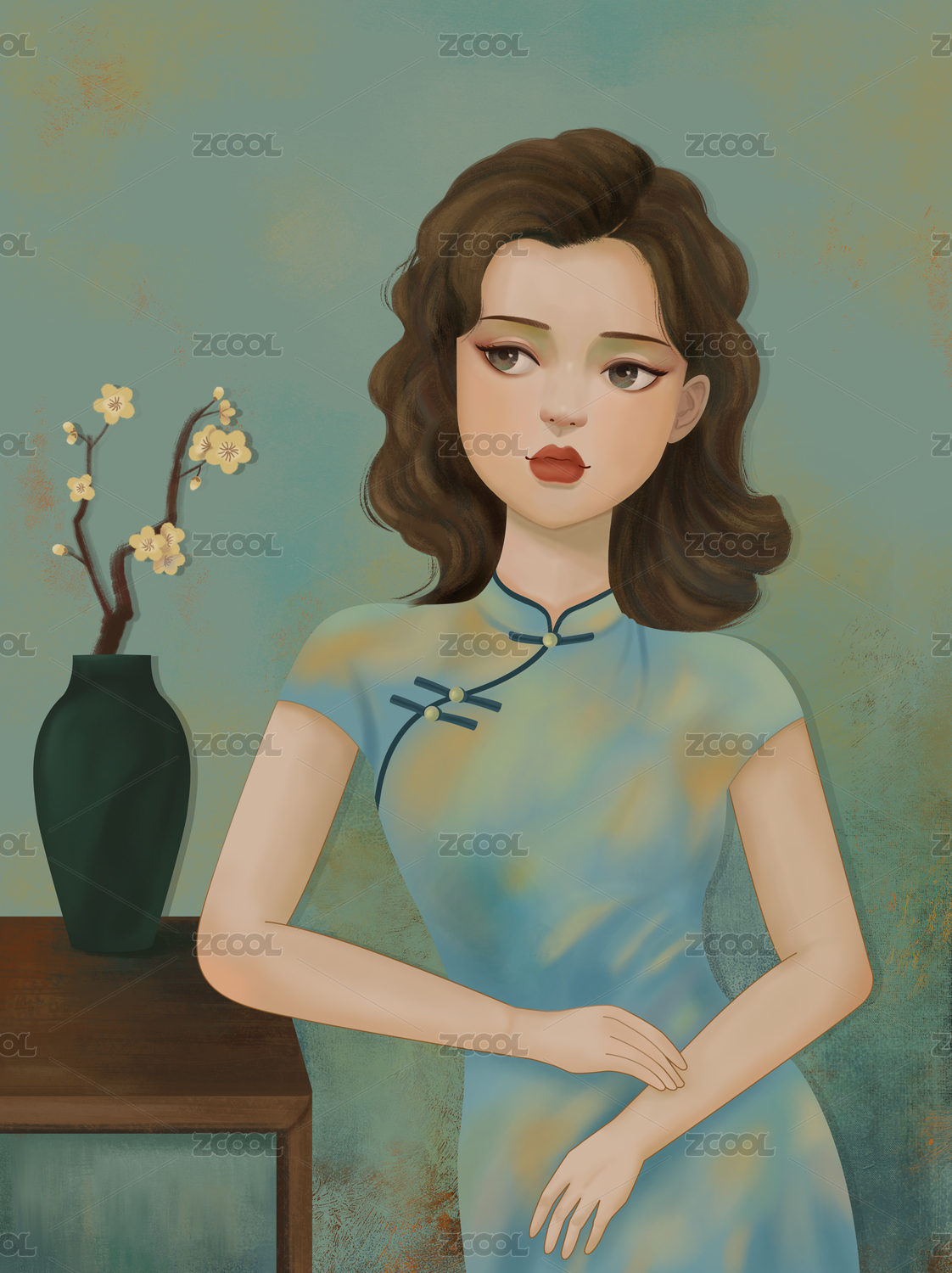 民国风画报身着旗袍的冷艳女人靠在桌旁