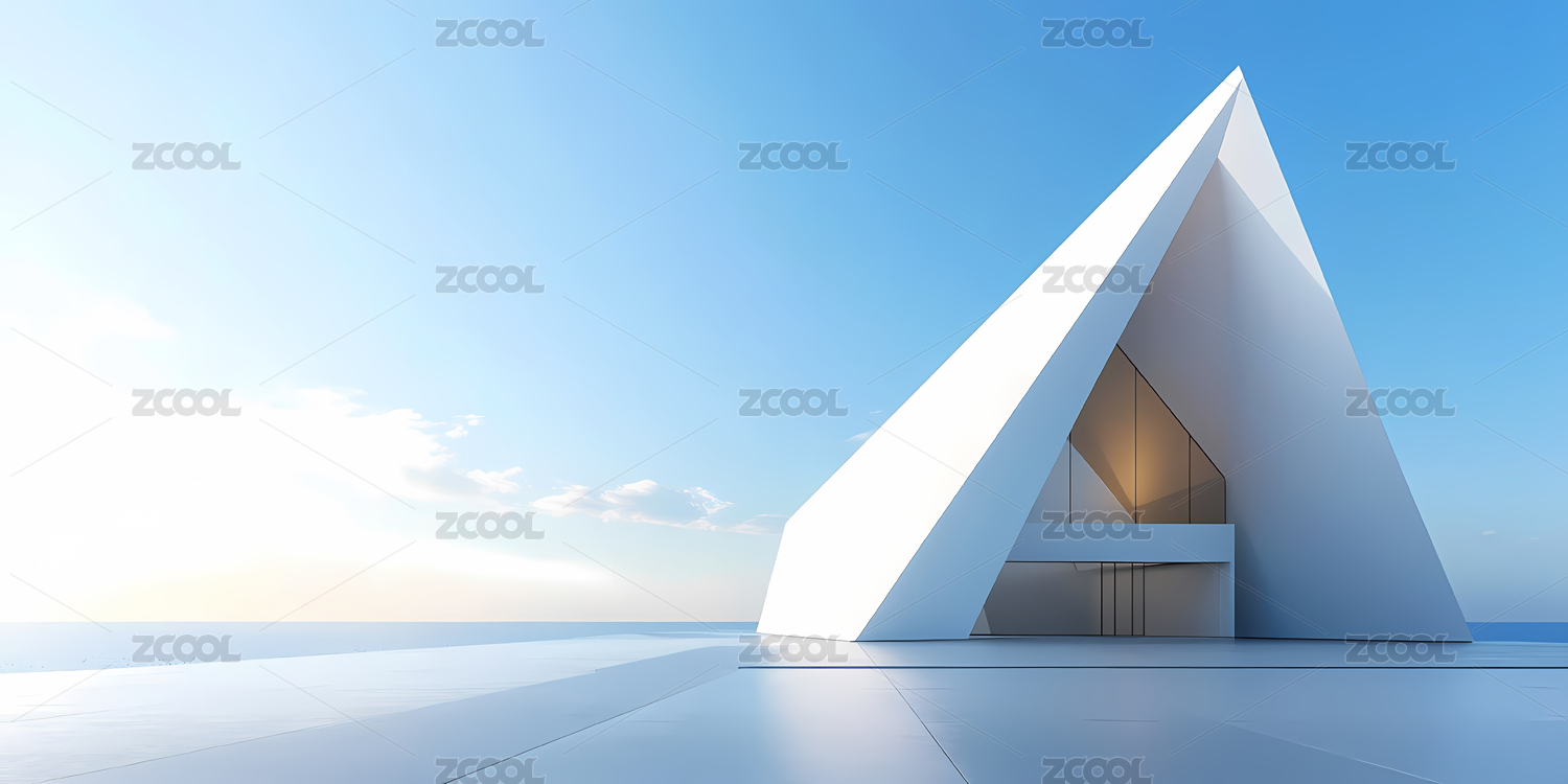 极简主义建筑的未来感三角几何的纯净空间
