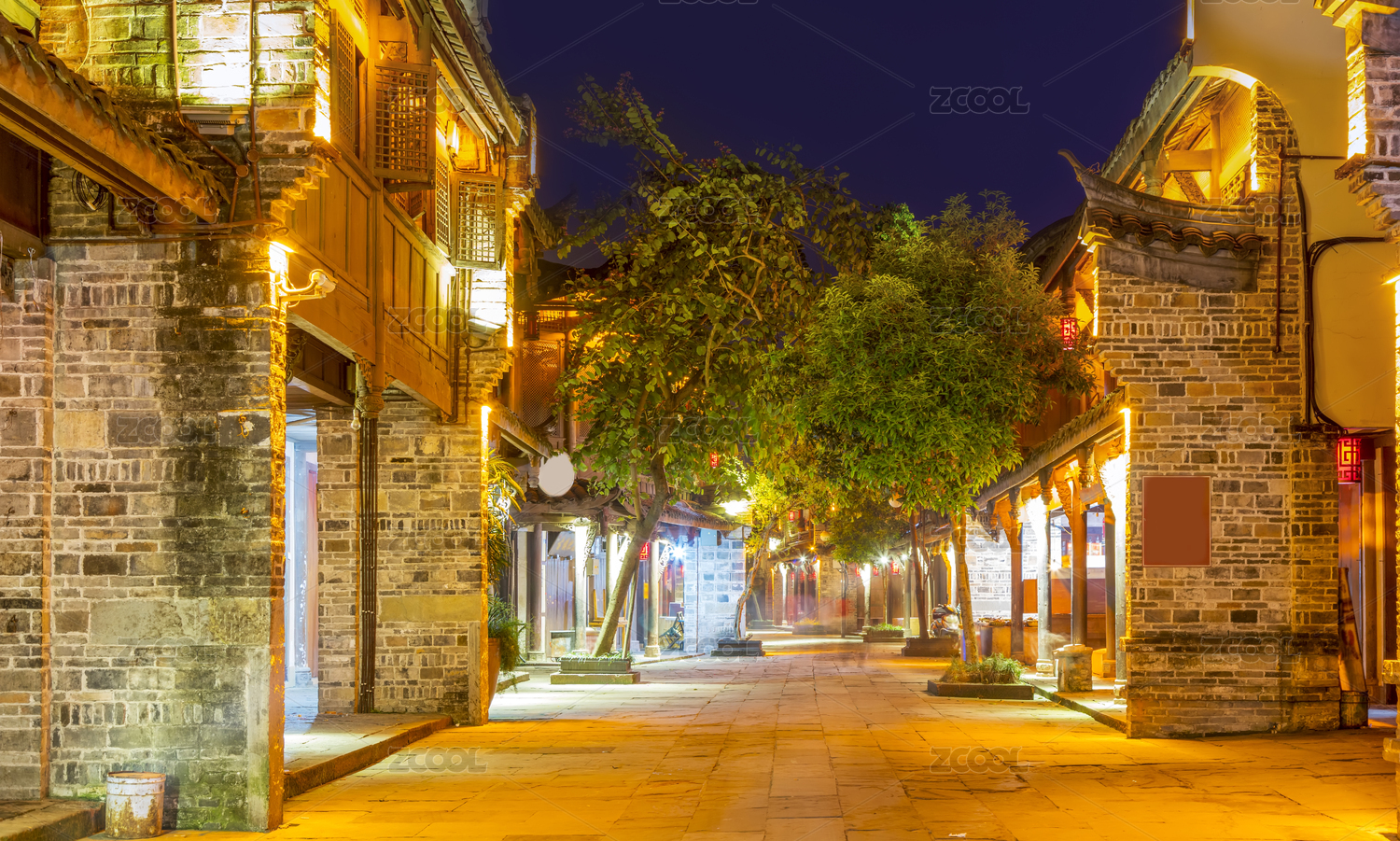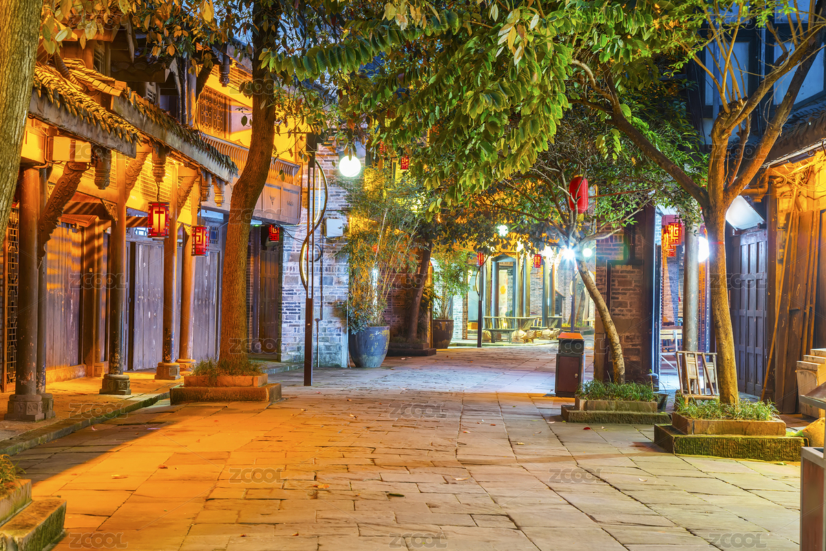成都宽窄巷子街道夜景