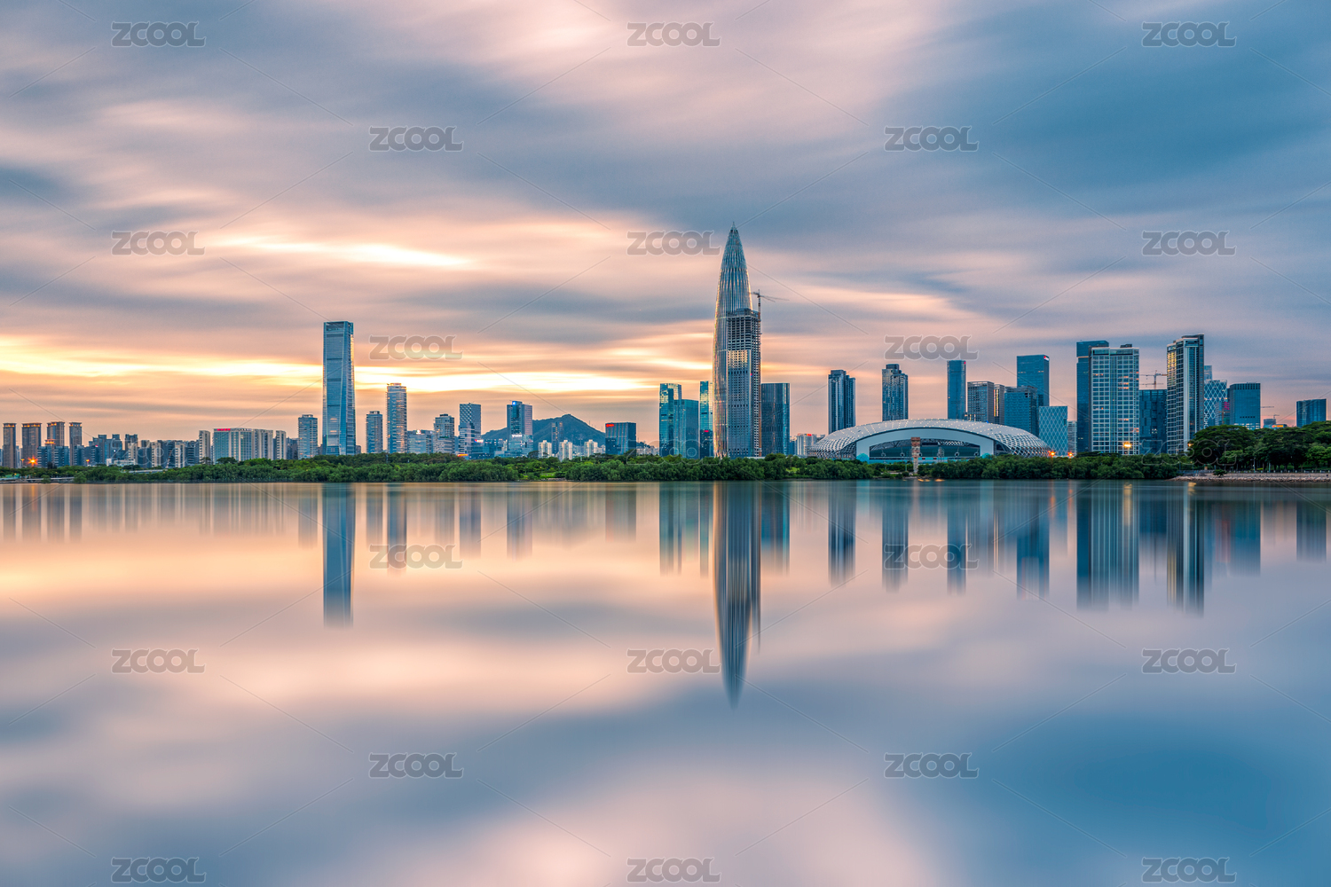 黄昏的深圳湾和摩天大楼