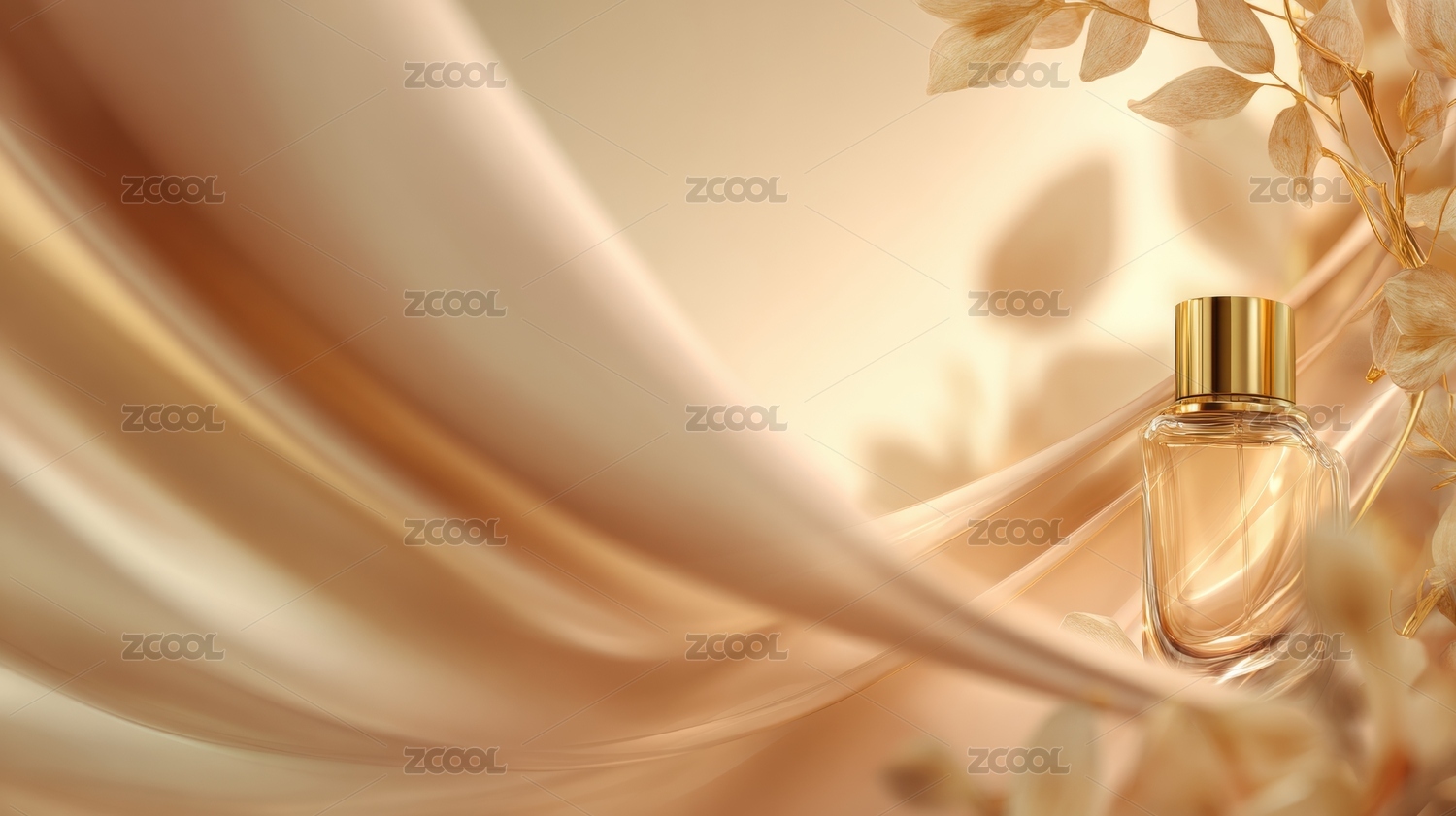 香水瓶置于柔和丝绸背景之上