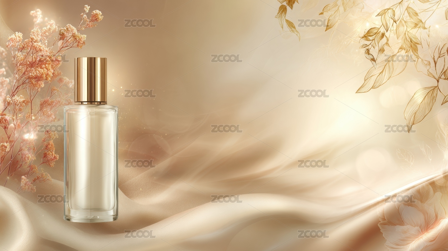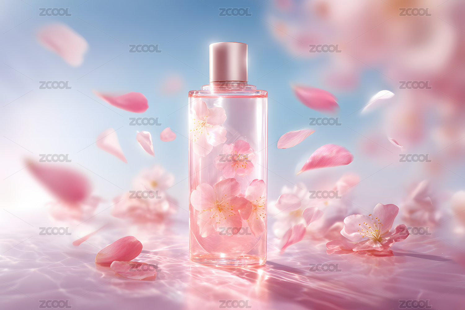 香水瓶与花瓣的梦幻场景