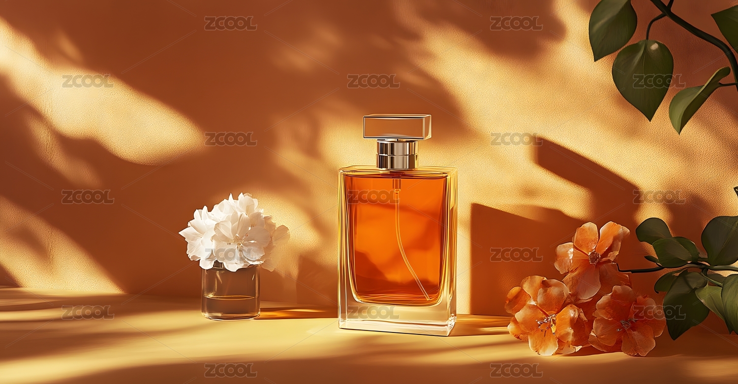 香水瓶与花朵的优雅意境
