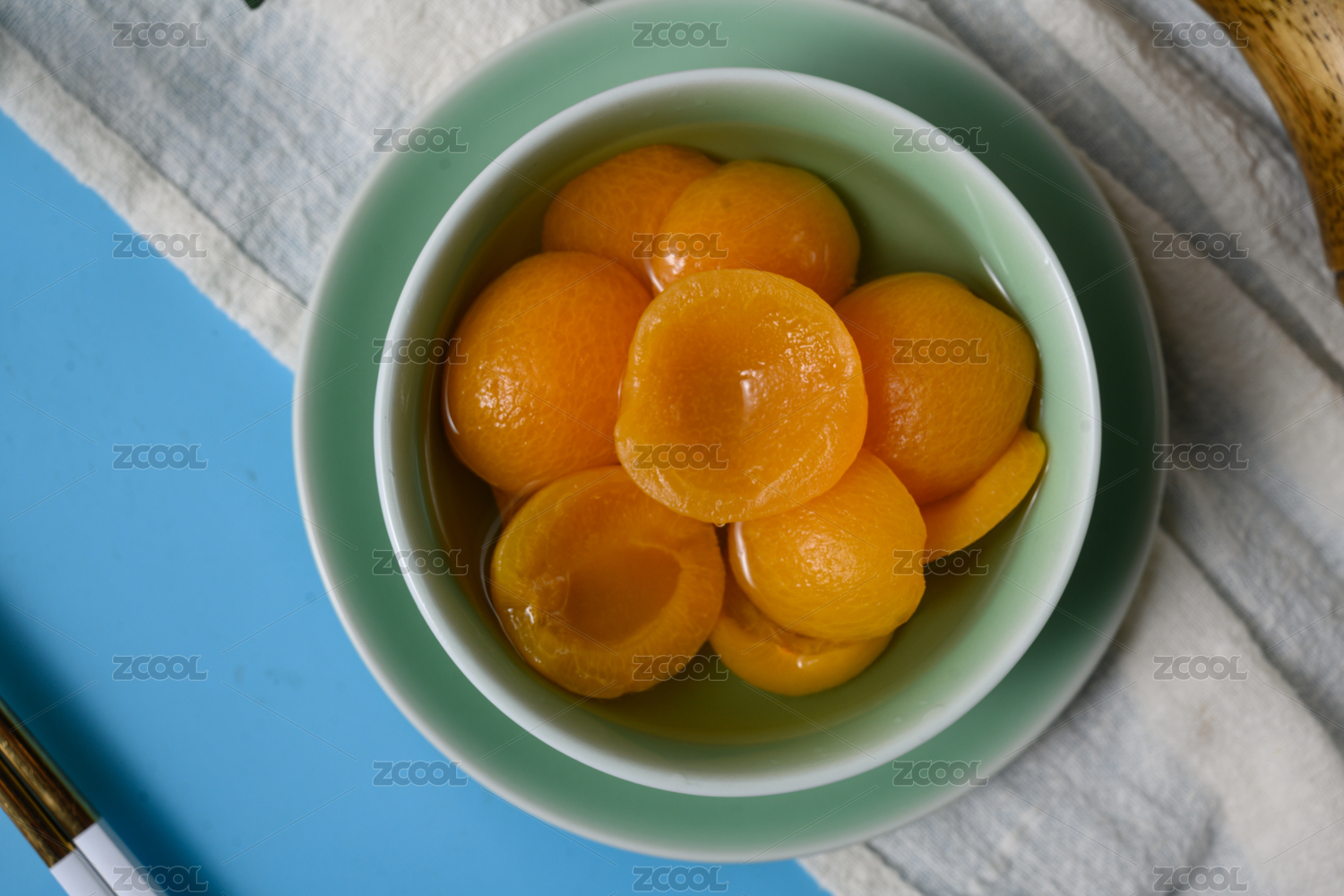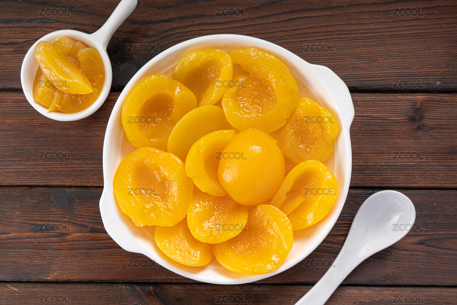 黄桃罐头特写木桌面背景田园风