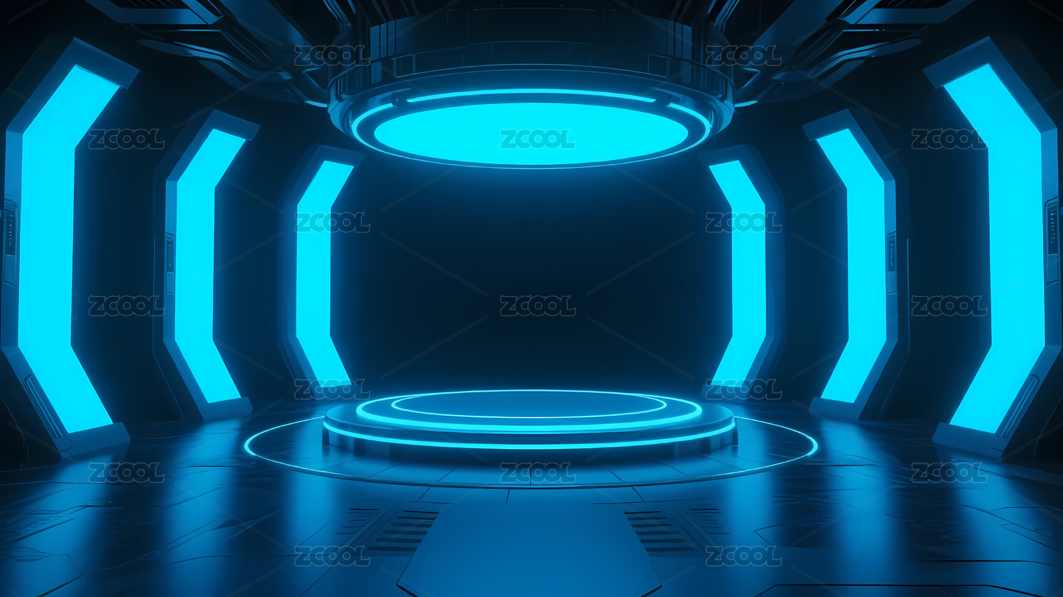 蓝色科幻圆形舞台
