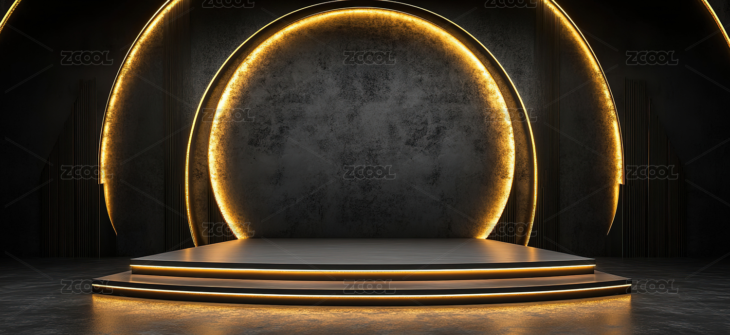 金色灯光照亮的圆形舞台