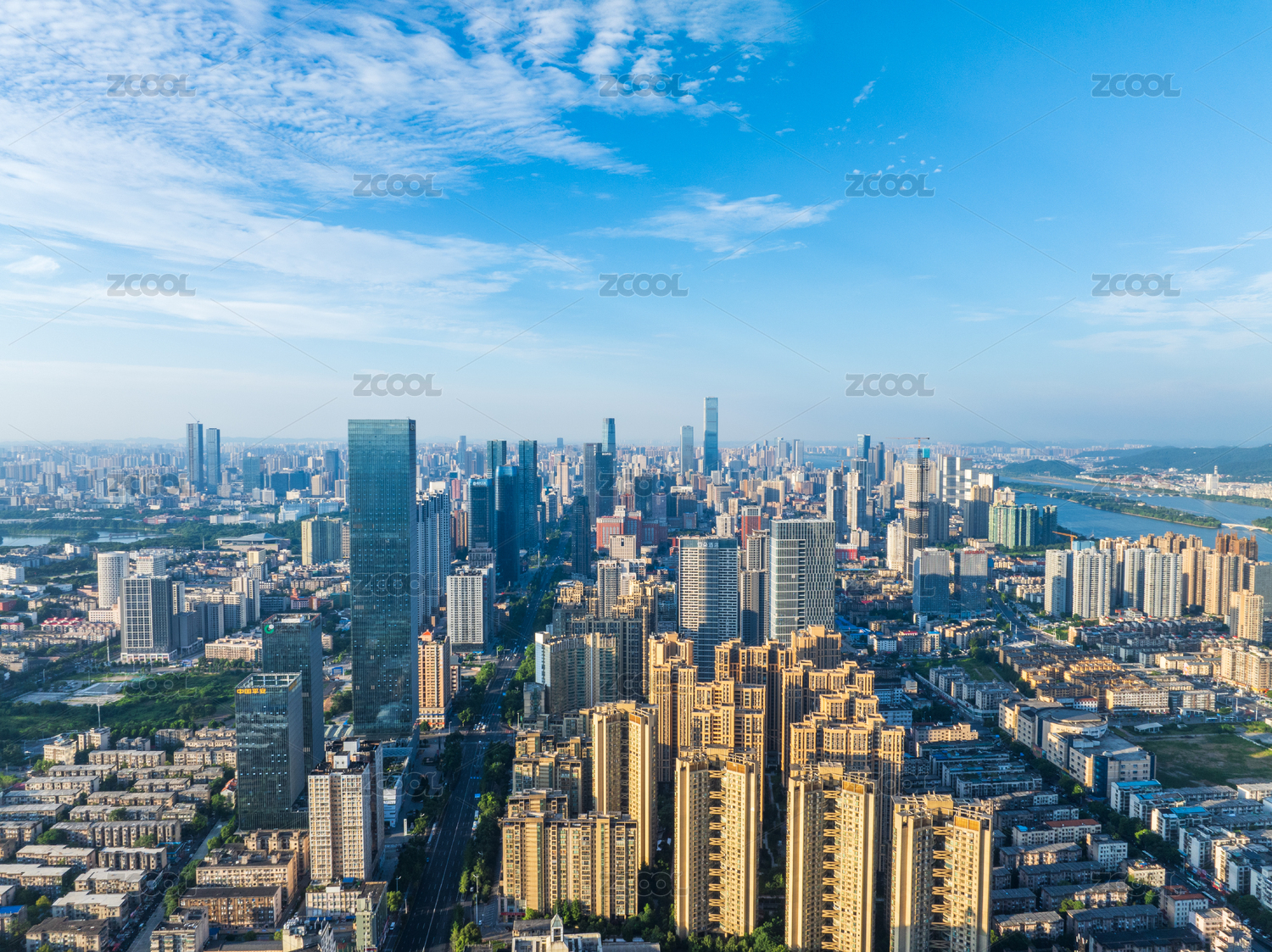 航拍,南京风光,金融中心,河西新城,南京眼步行桥,摩天大楼,城市景观,办公大楼,城市天际线,建筑外部