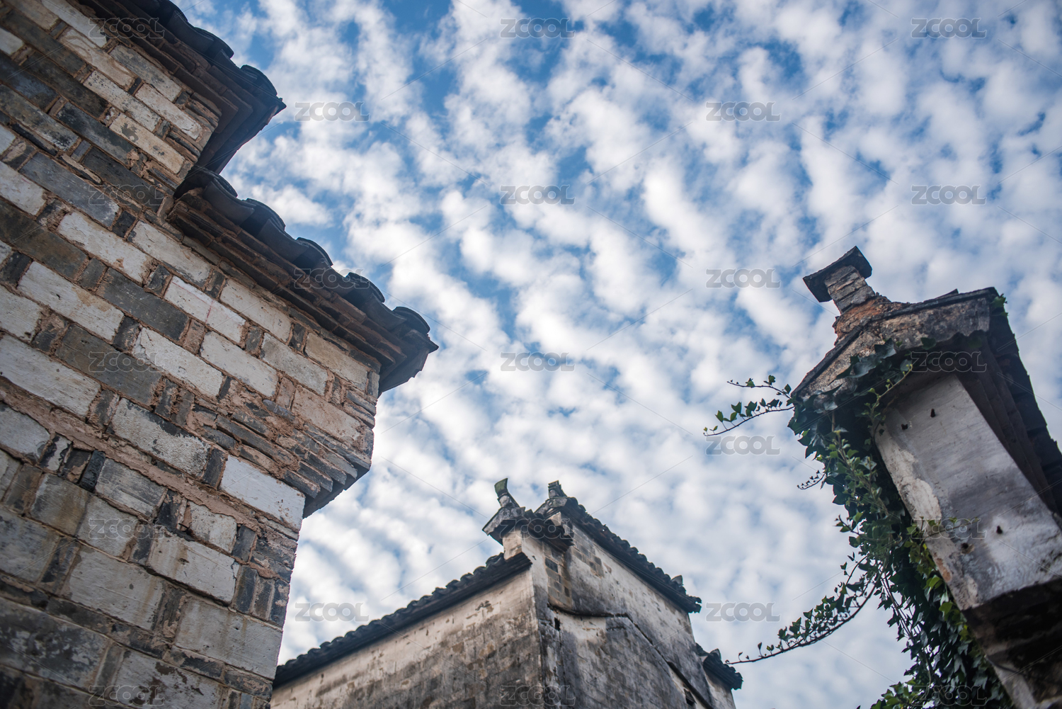 中国安徽皖南徽派建筑民居青砖黑瓦白墙马头墙