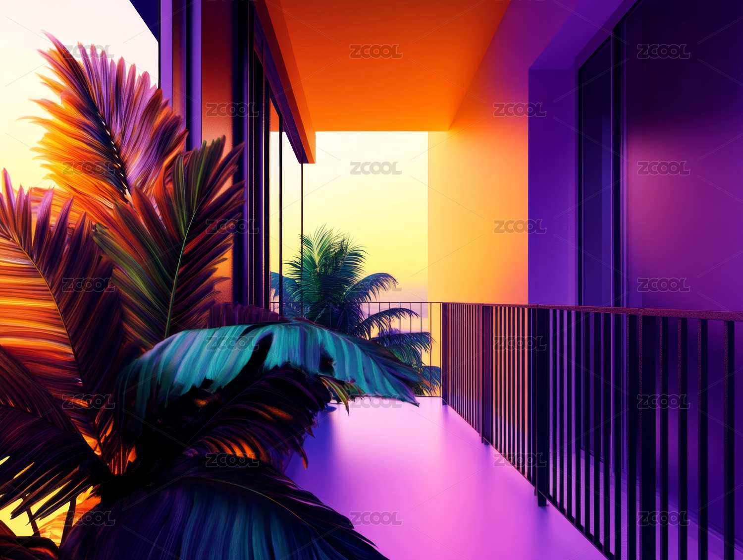 热带日落阳台景观