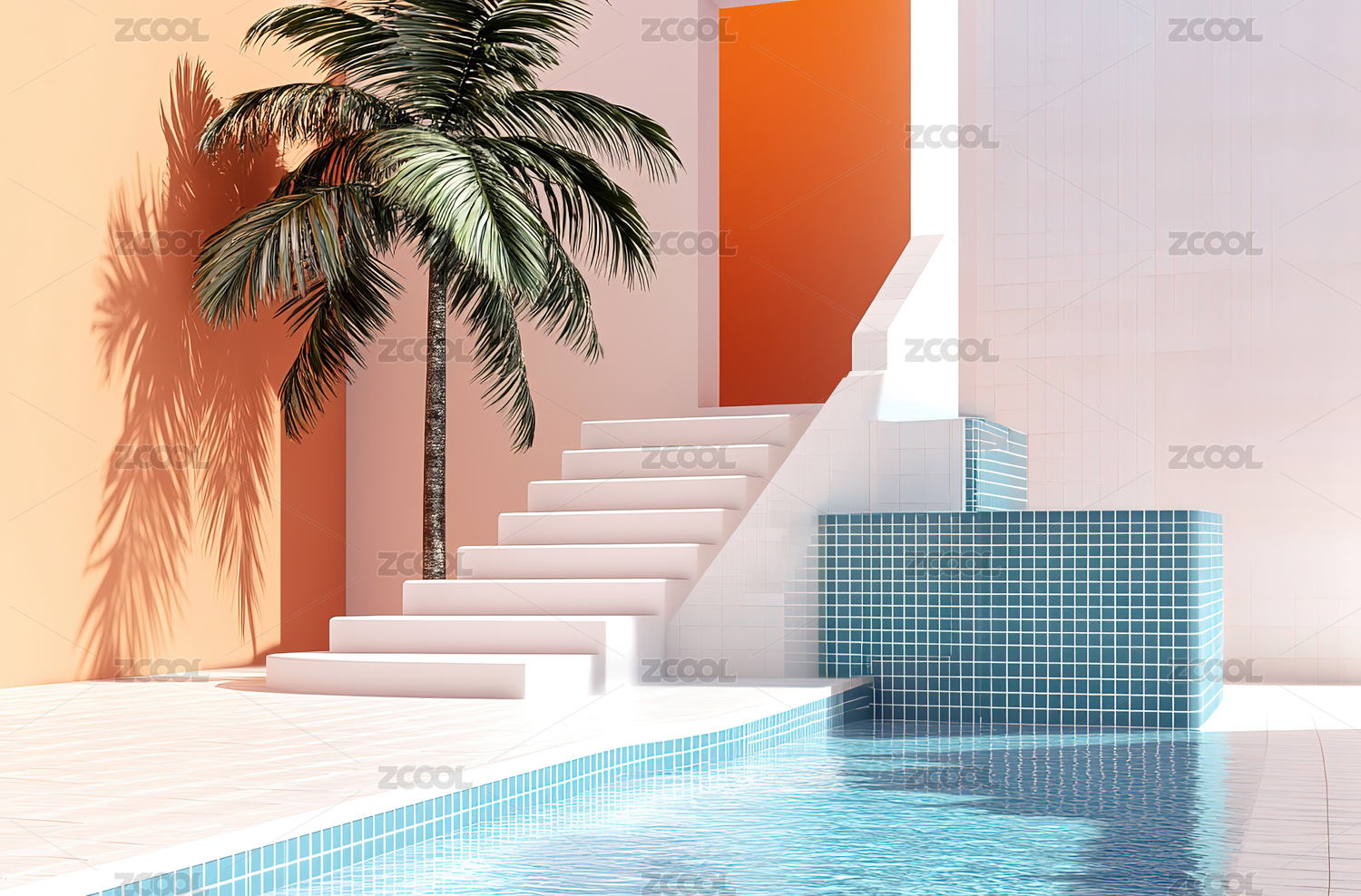 度假酒店泳池边棕榈树环绕