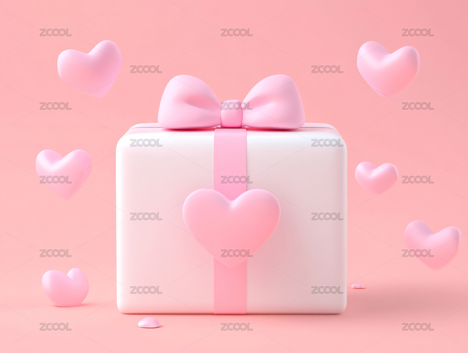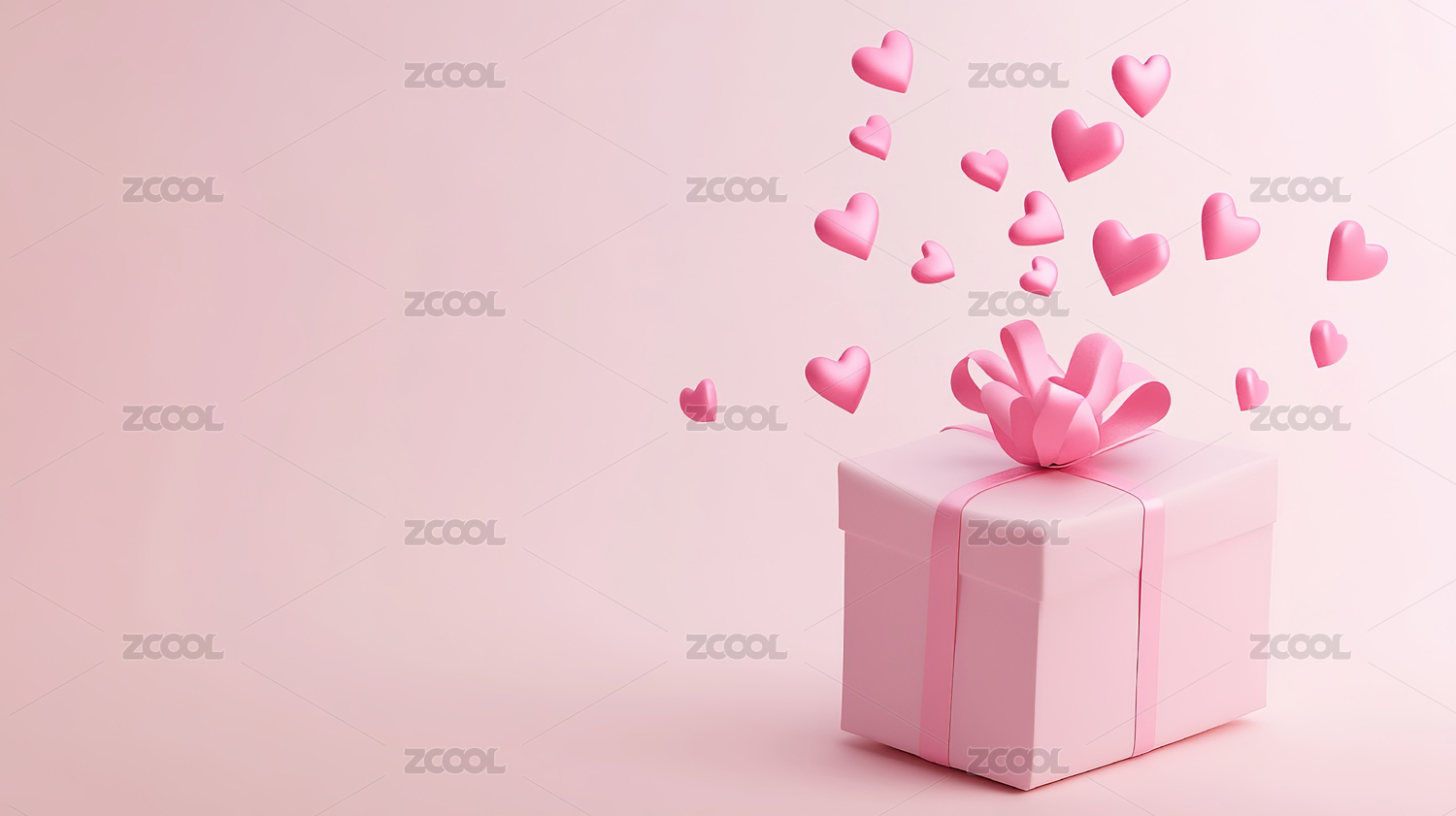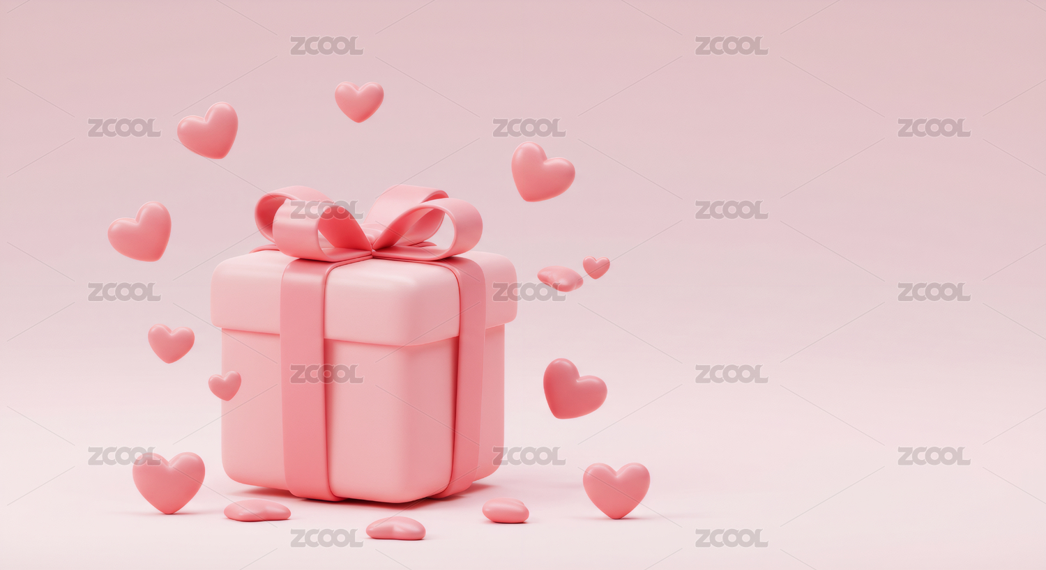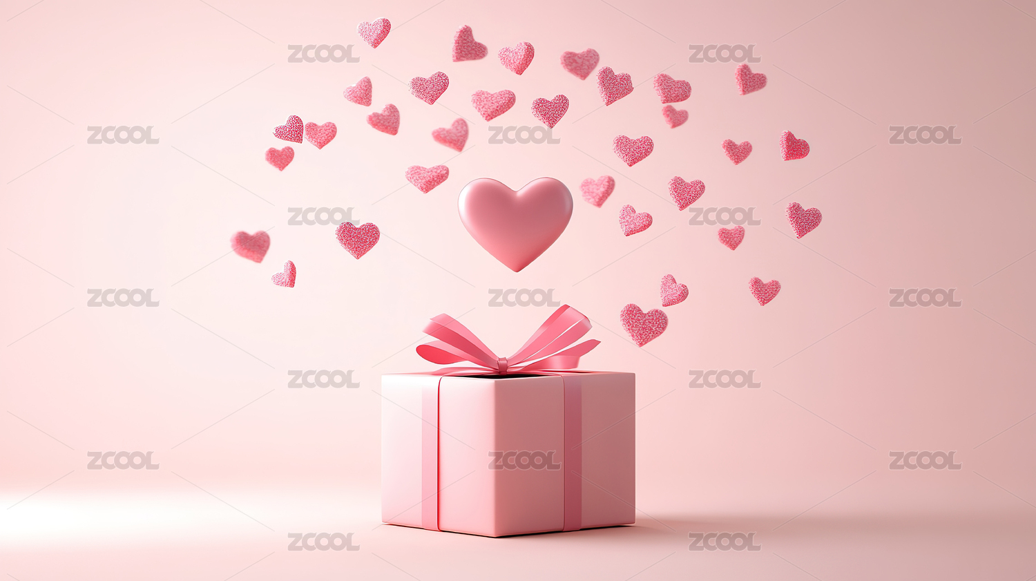 情人节,插画,3d,商务,浪漫,粉色,礼盒,礼物,简单,背景