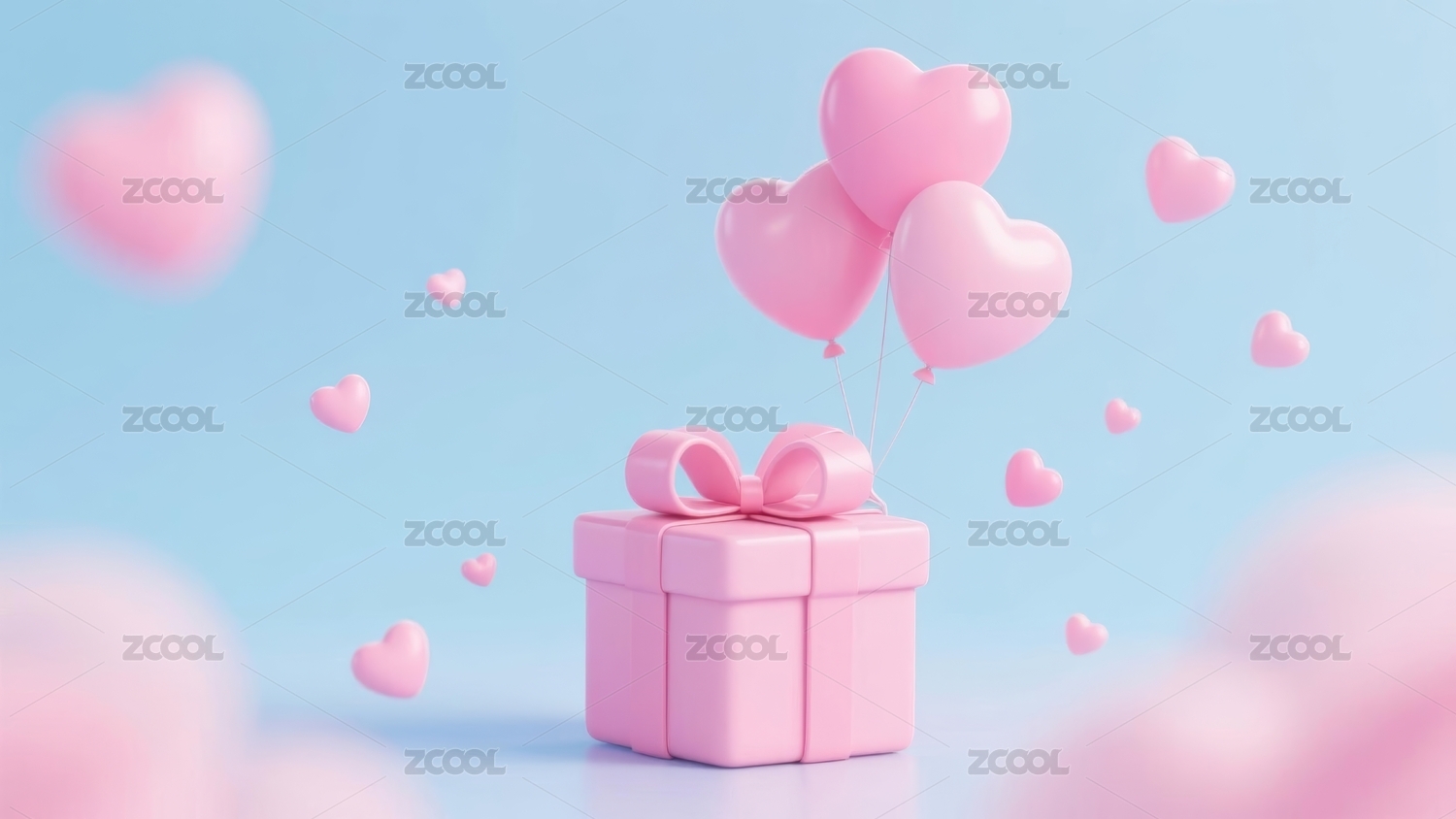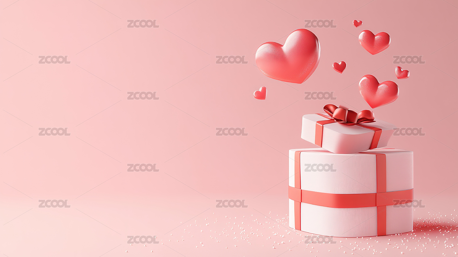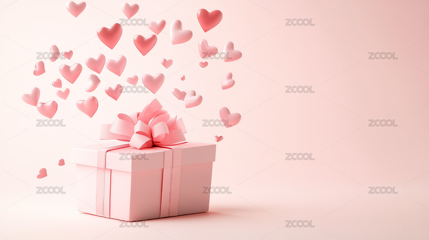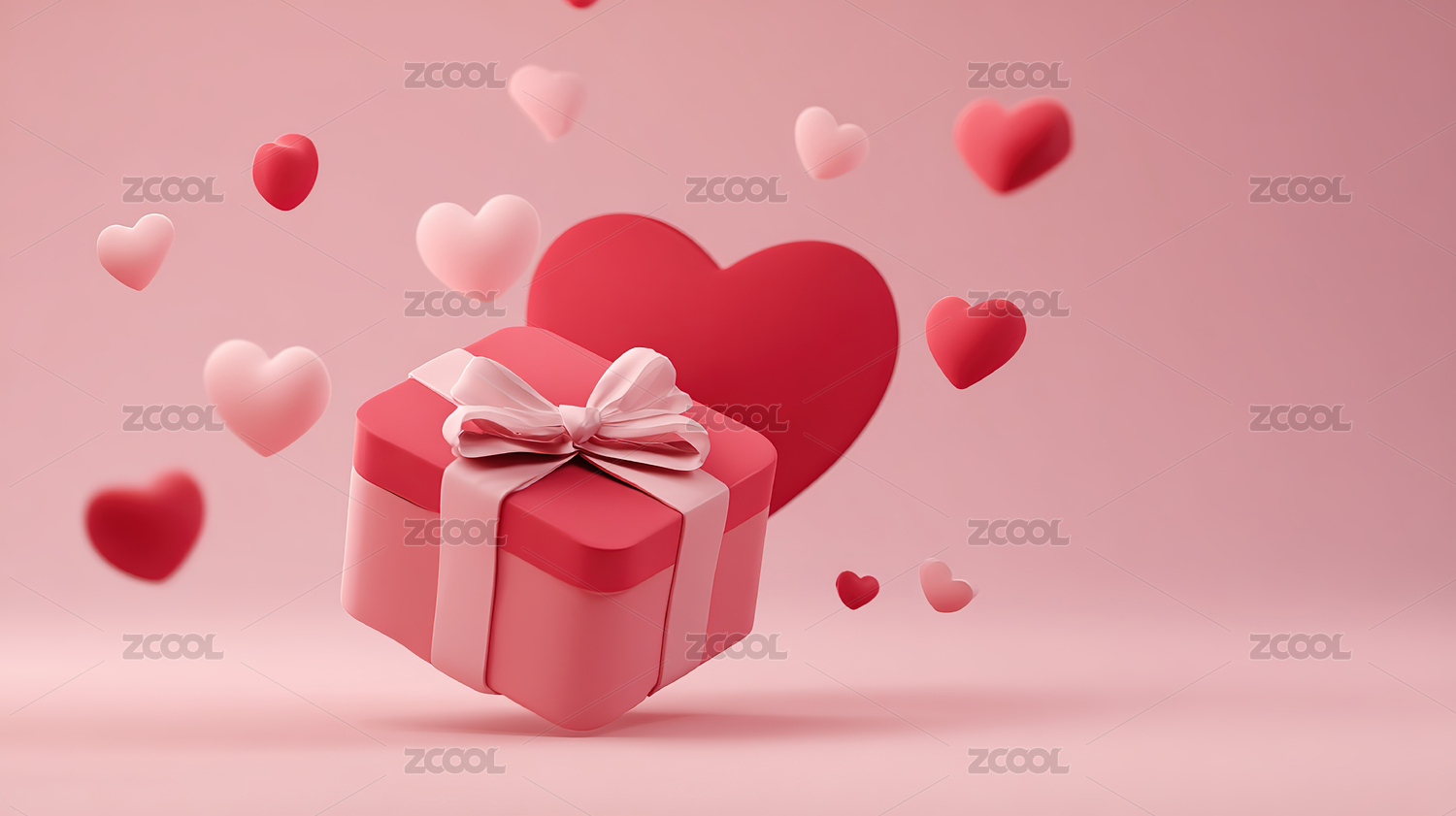 情人节,插画,3d,商务,浪漫,粉色,礼盒,礼物,简单,背景