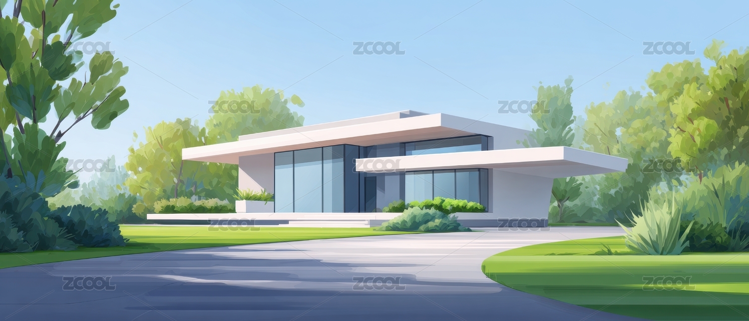 现代别墅的宁静绿洲