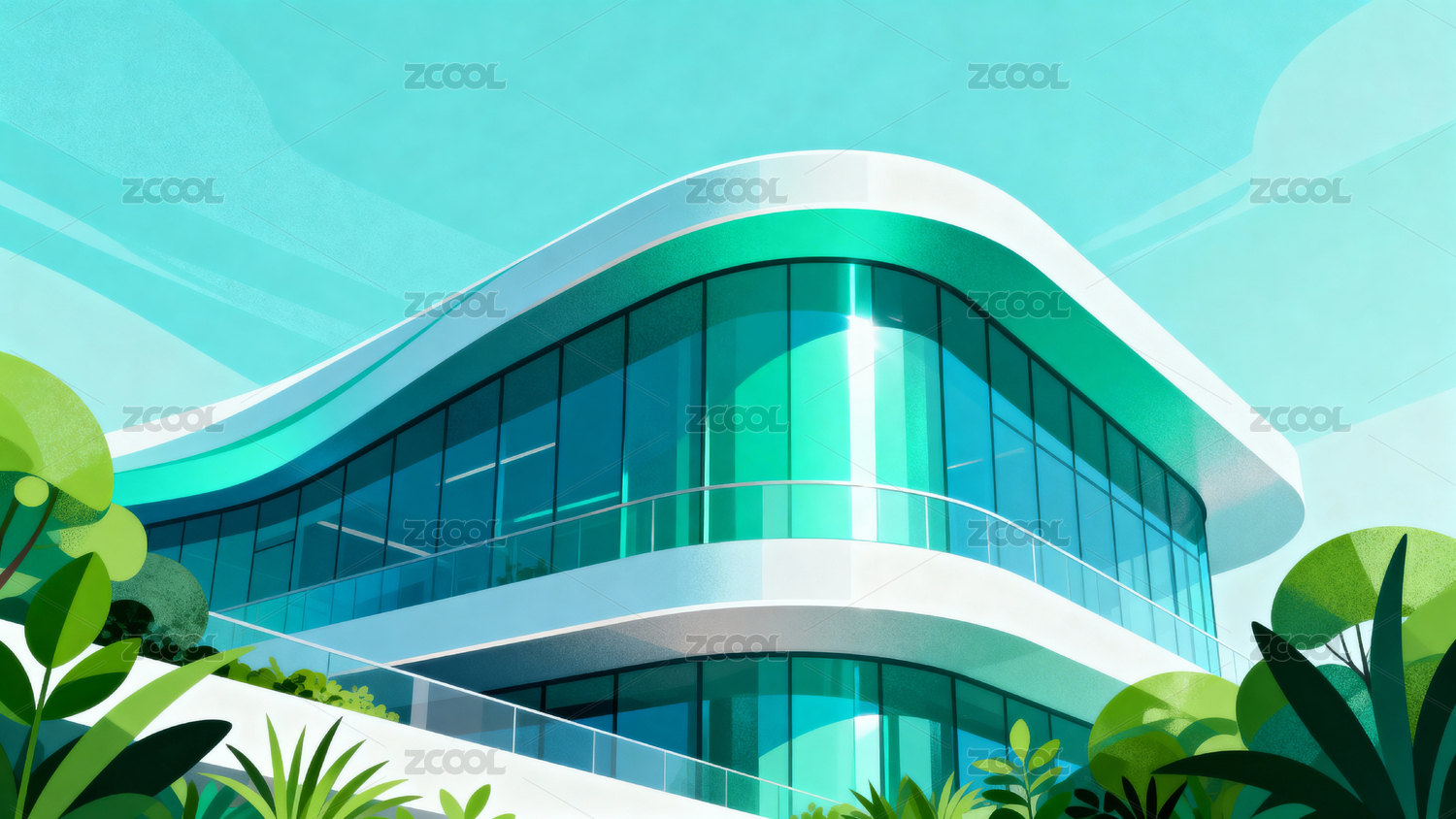 现代流线型建筑插画