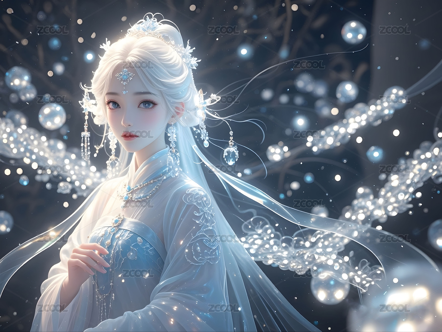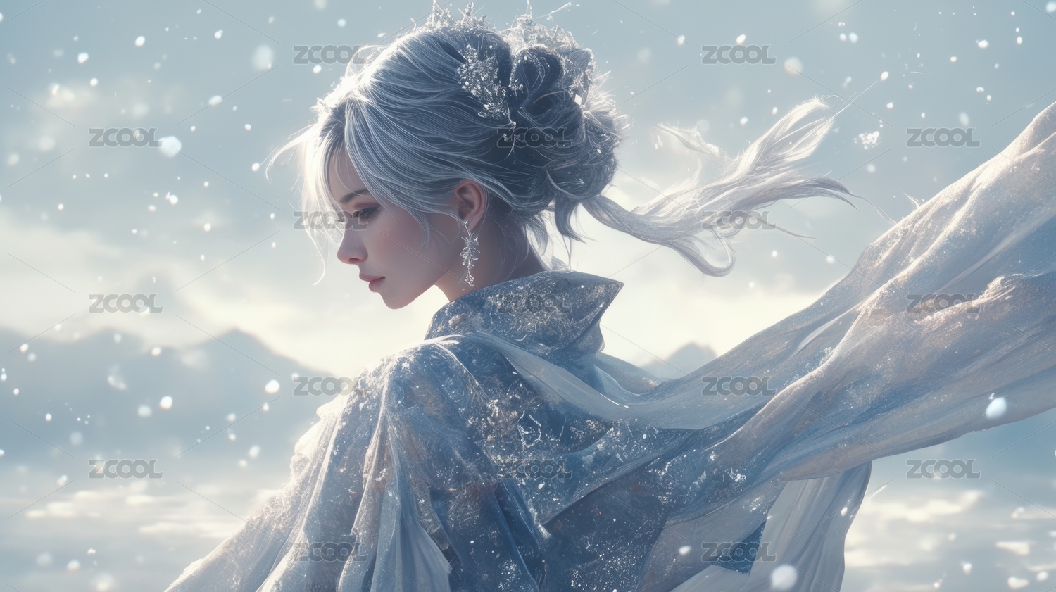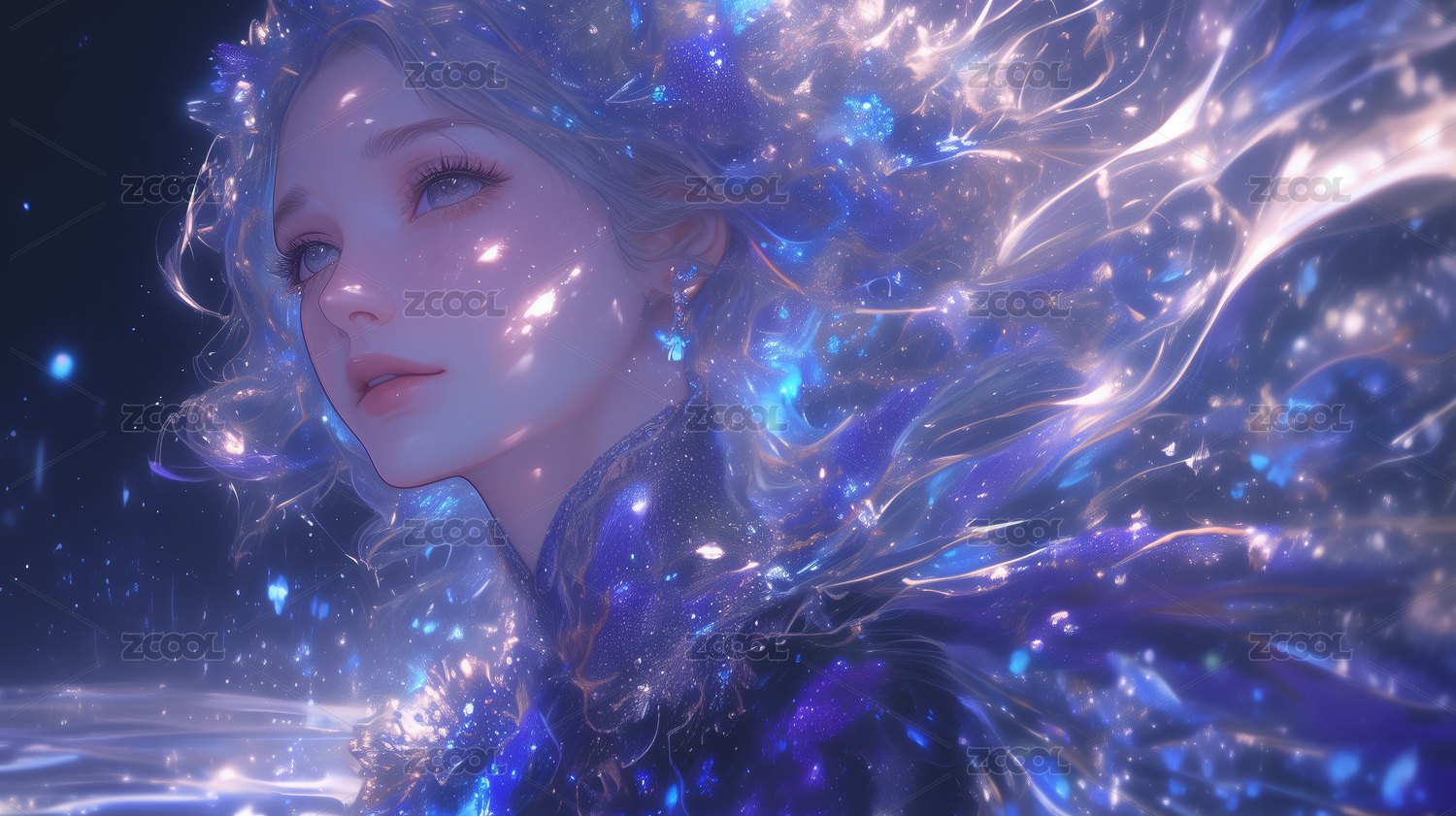 插画,绘画,古风,古装,蓝色,少女,女孩