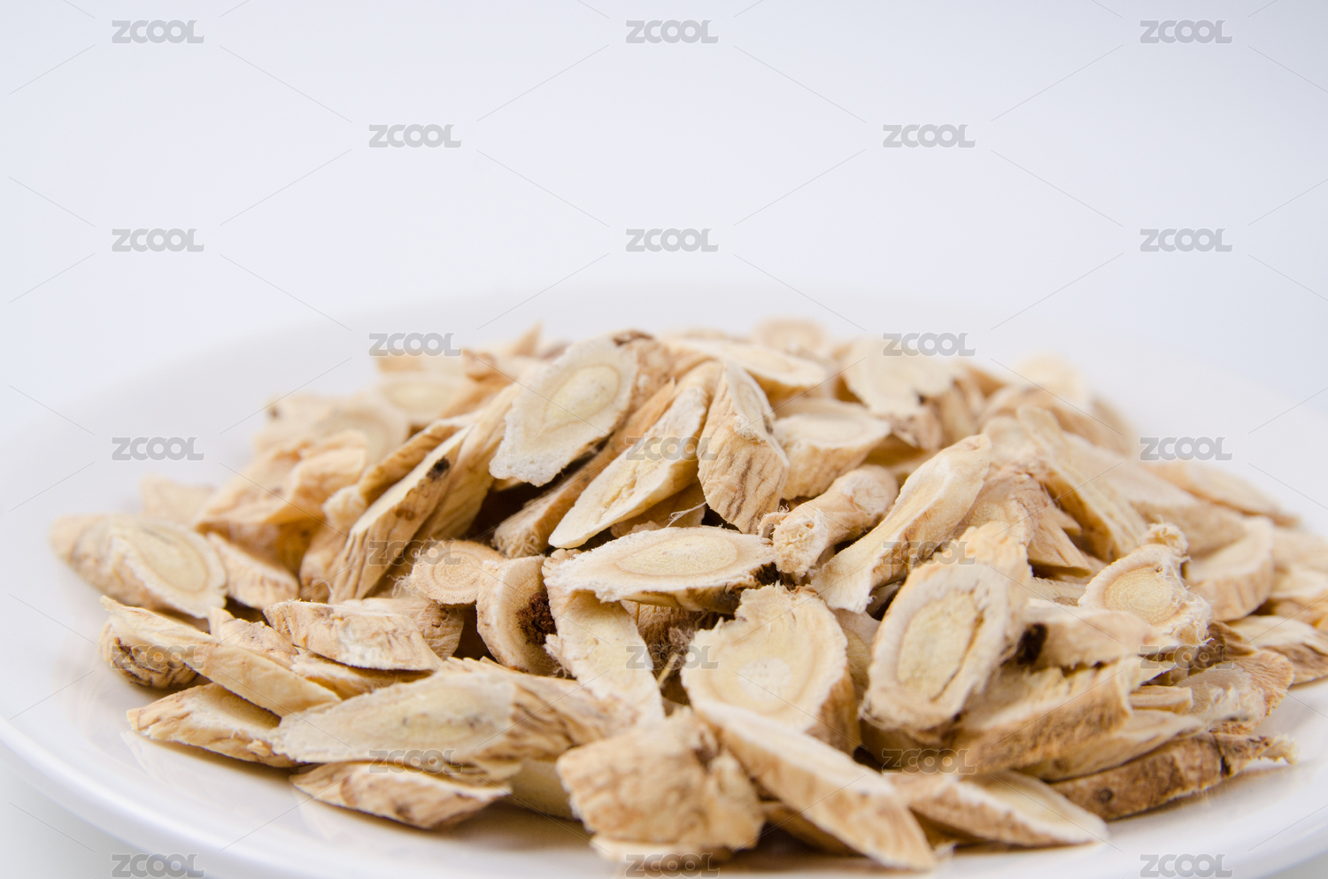 白底背景上的黄芪切片