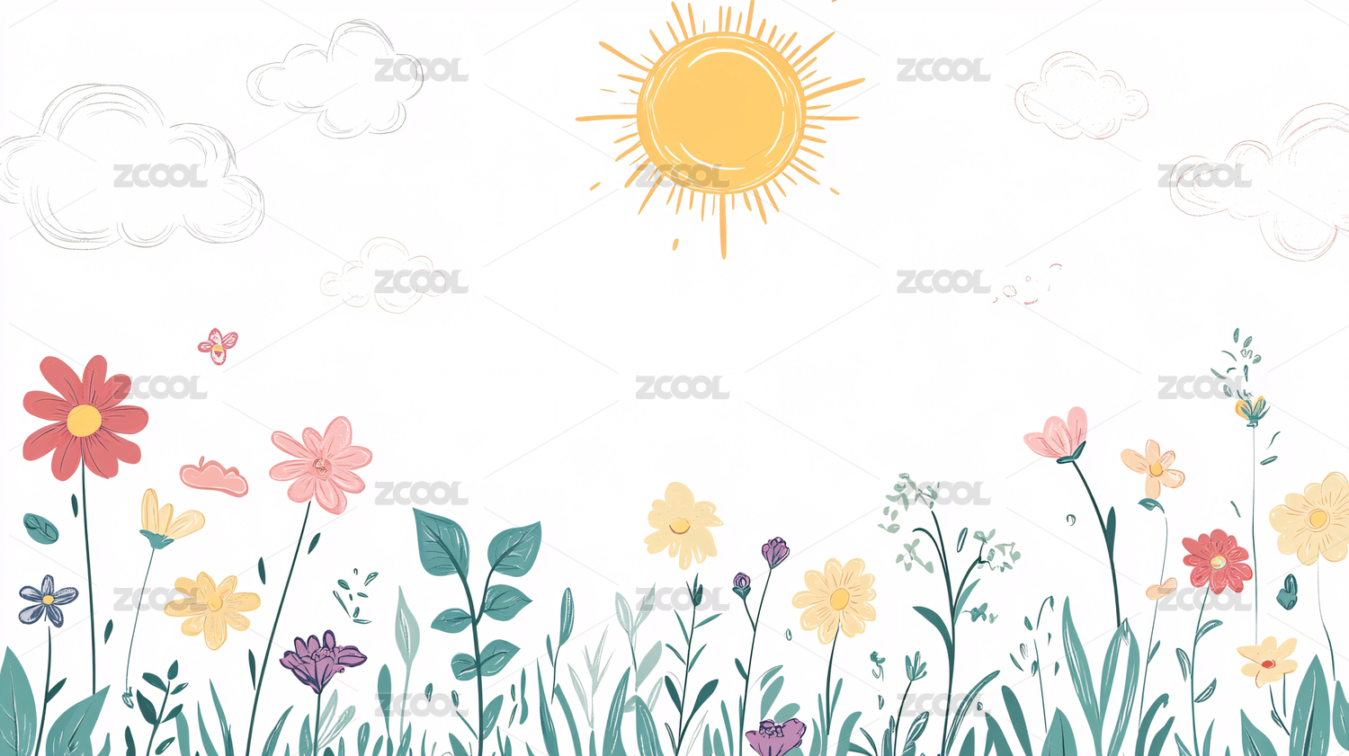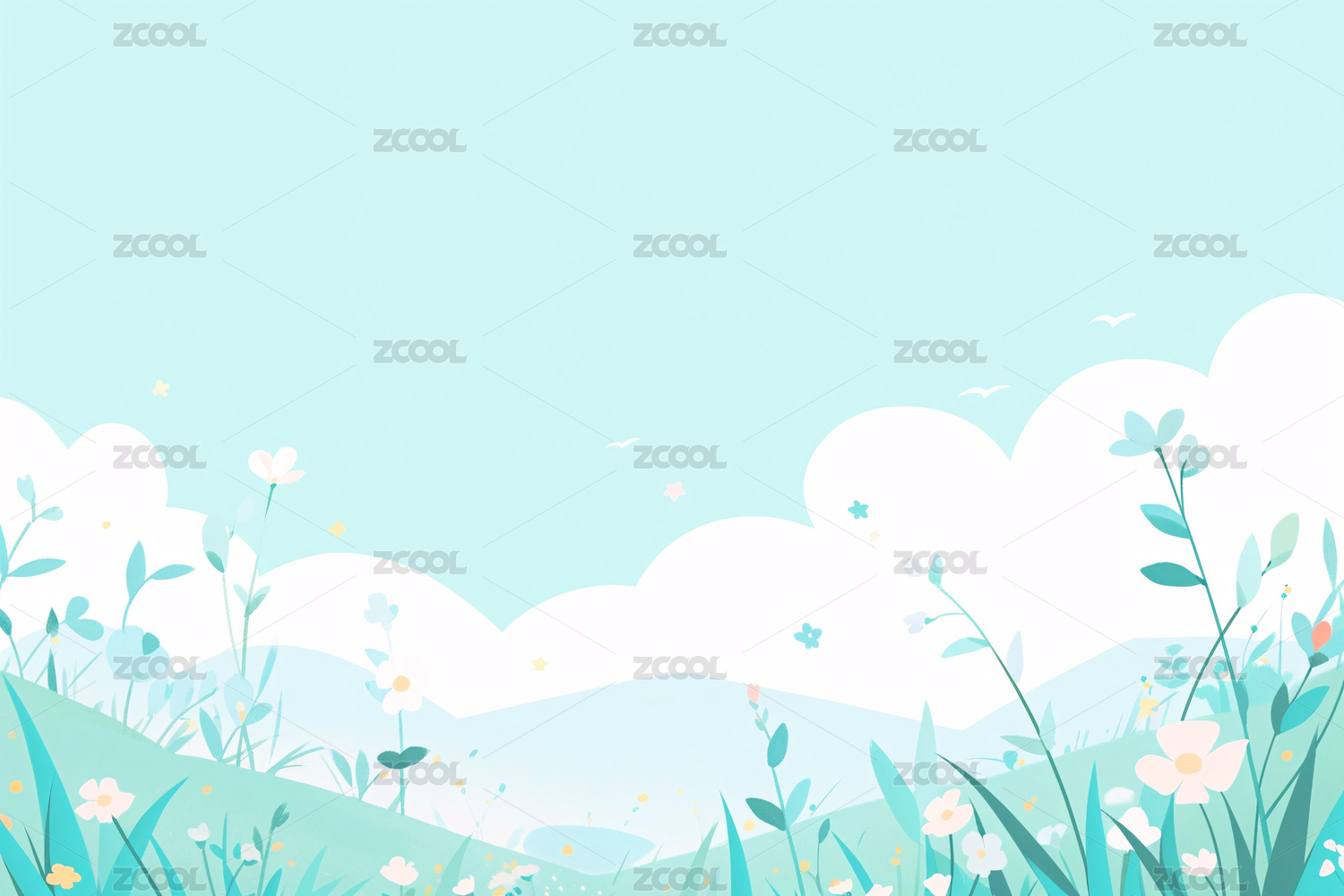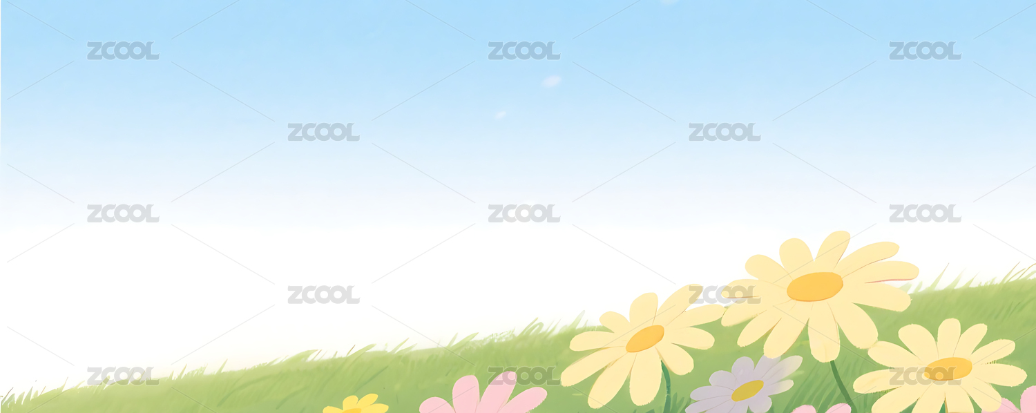简约花朵草地插画背景