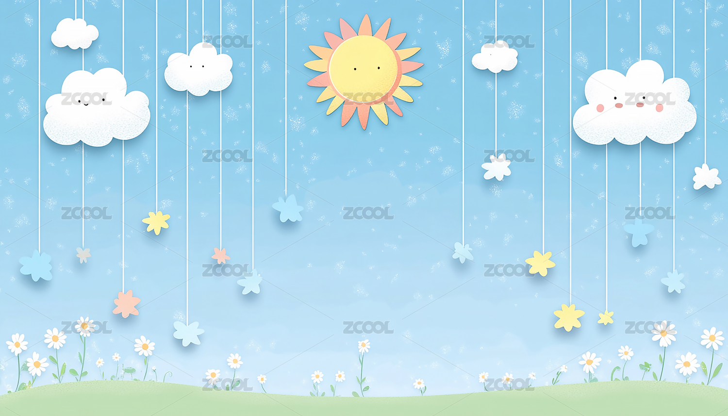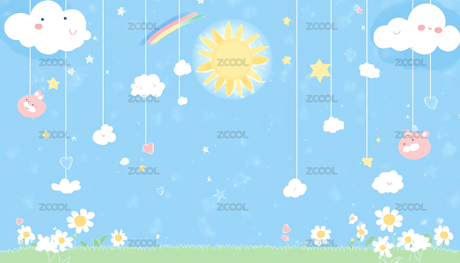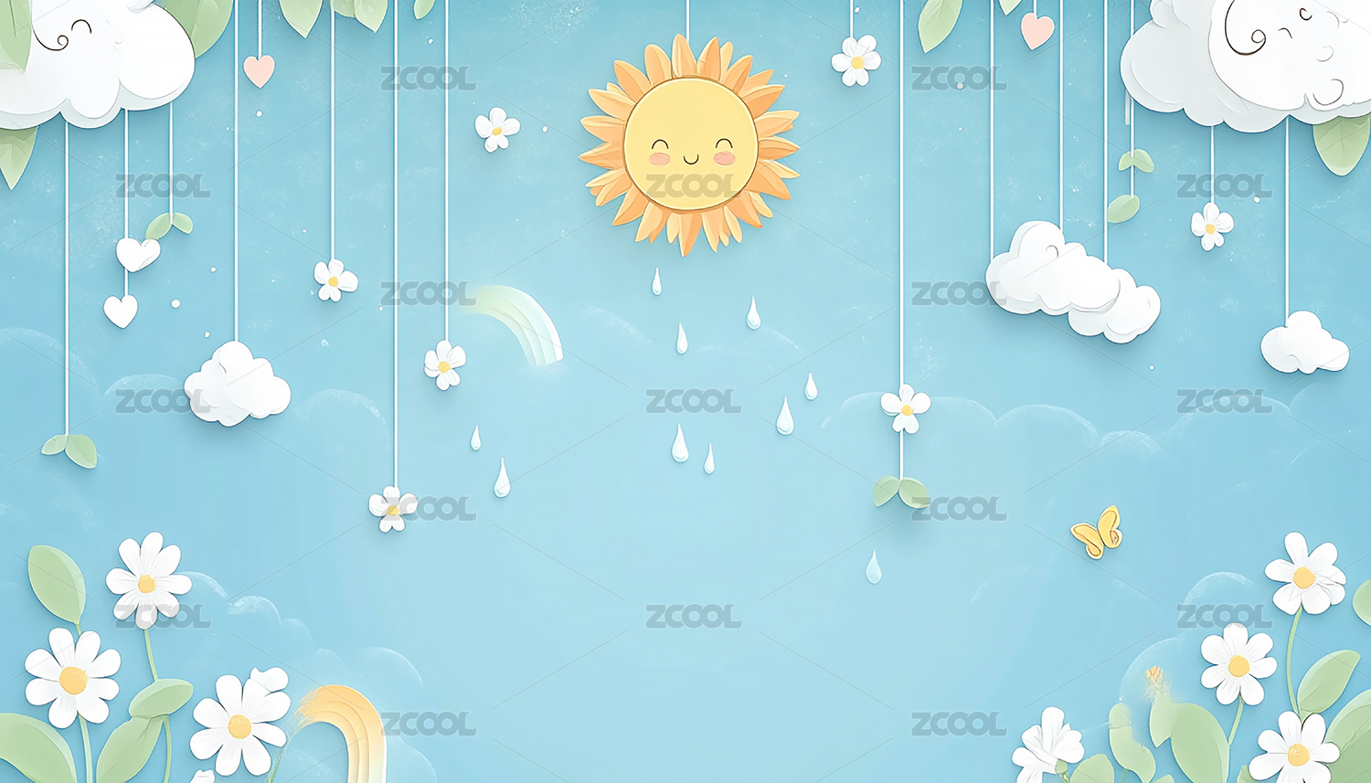 卡通可爱太阳云朵背景