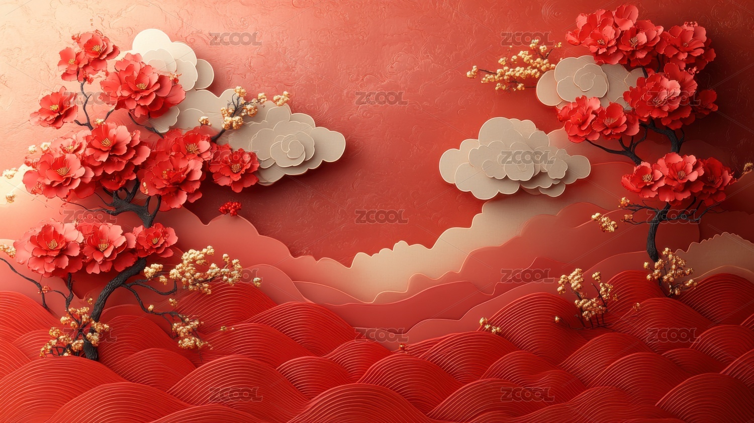 红色,春节,新春,植物,花卉,叶子,盛开,红梅,梅花,腊梅