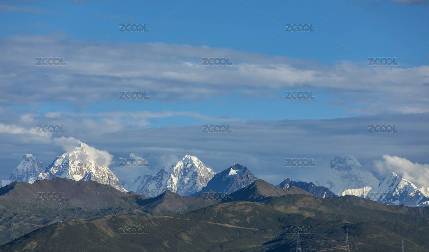 蓝天白云下的贡嘎雪山群