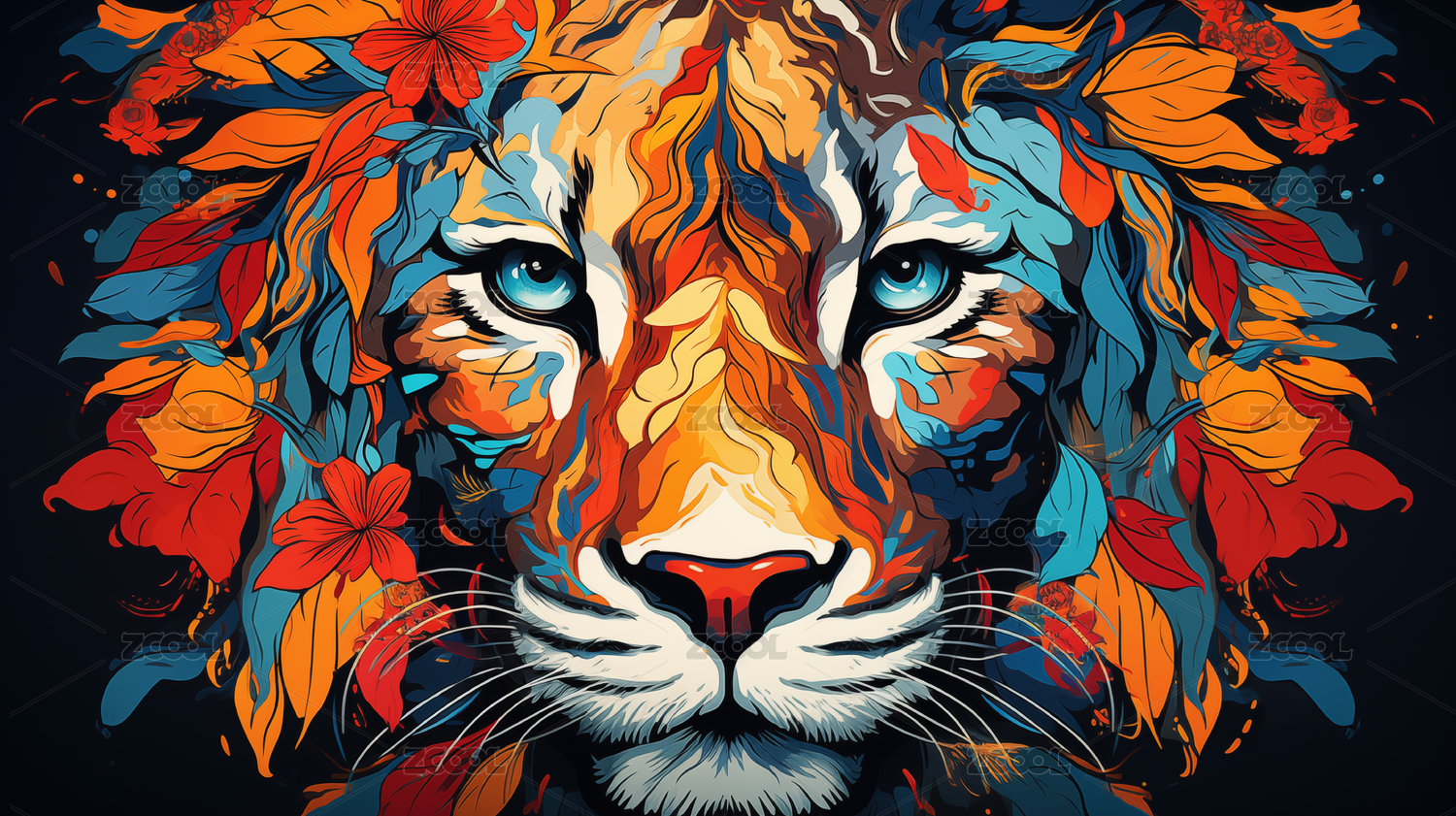 抽象线条感老虎头T恤图案美式暗黑风格插画