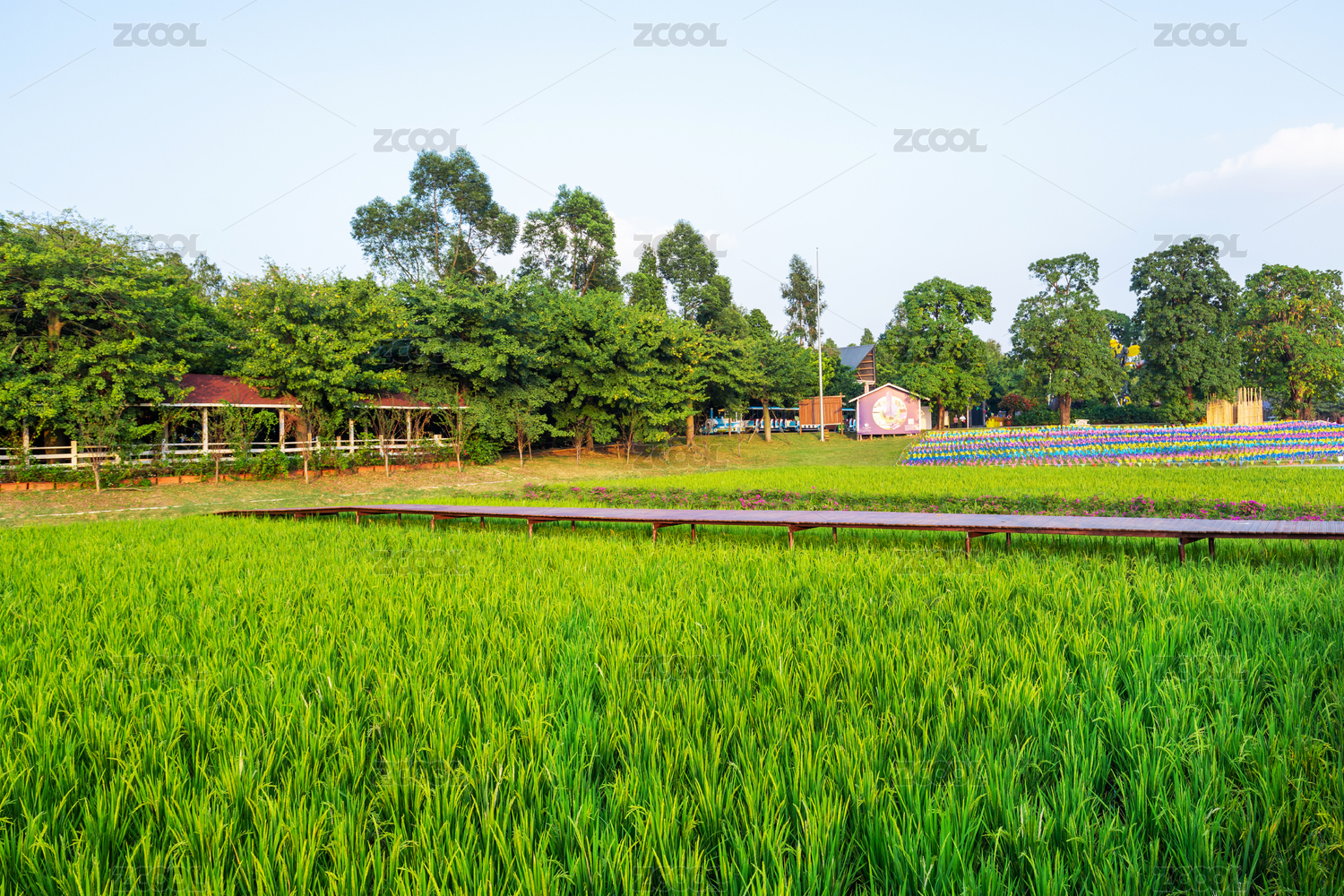 晴空下的稻田风景