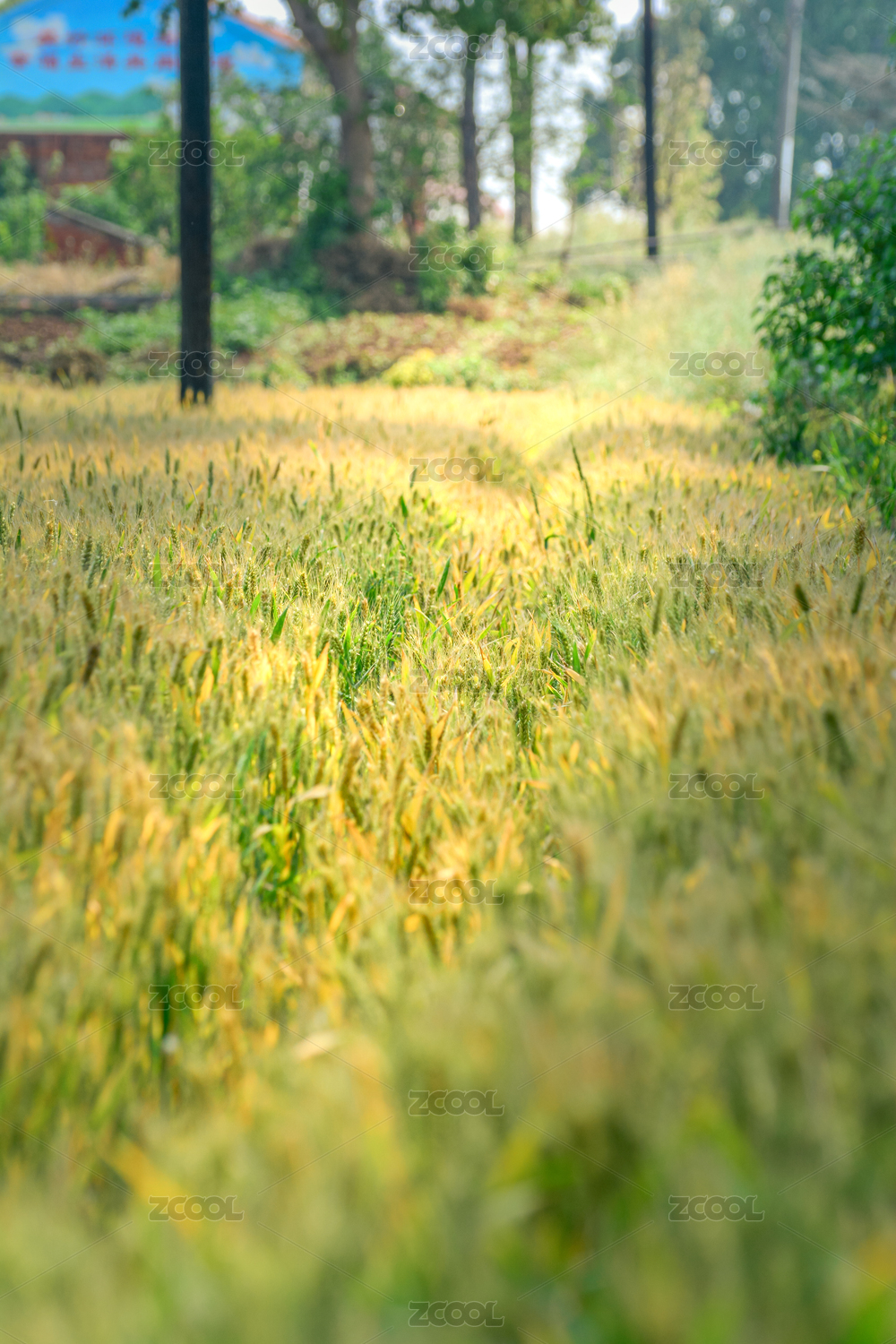 夏天乡村稻田里生长的金色小麦