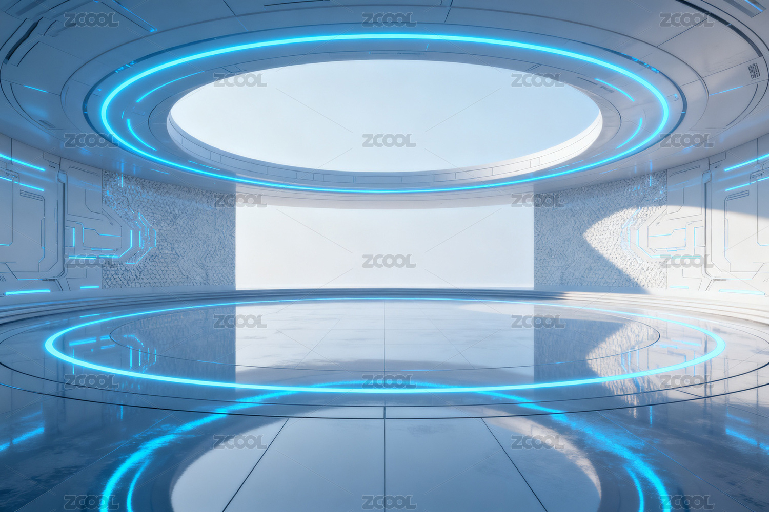 未来科技感蓝色水池环形空间设计