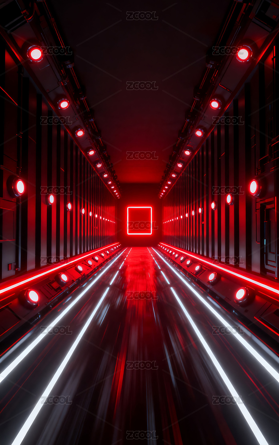 3D,AIGC,未来,科技,空间,灯光,科技感,走廊,红色,未来感