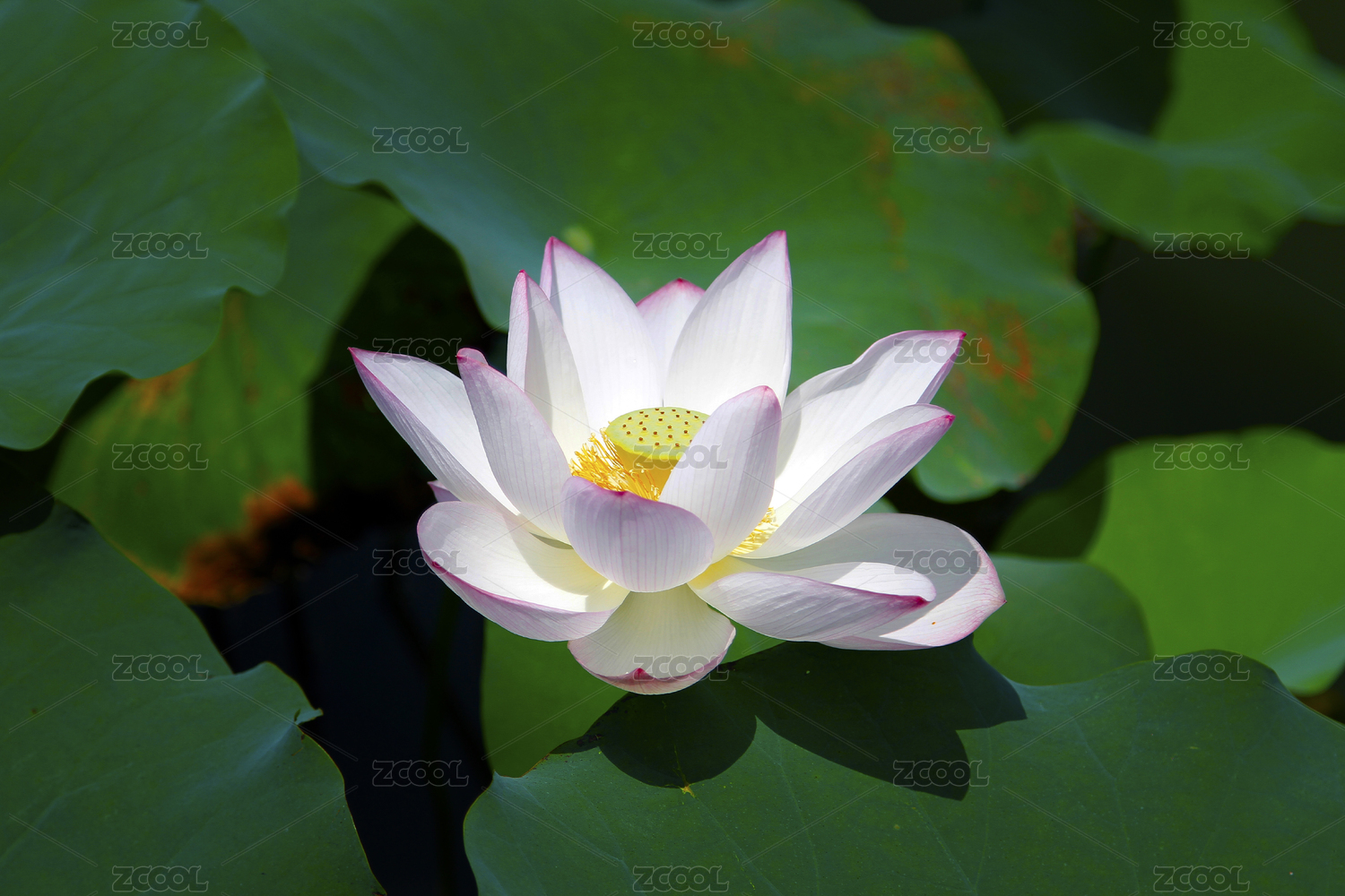 烈日下盛开的白色睡莲花