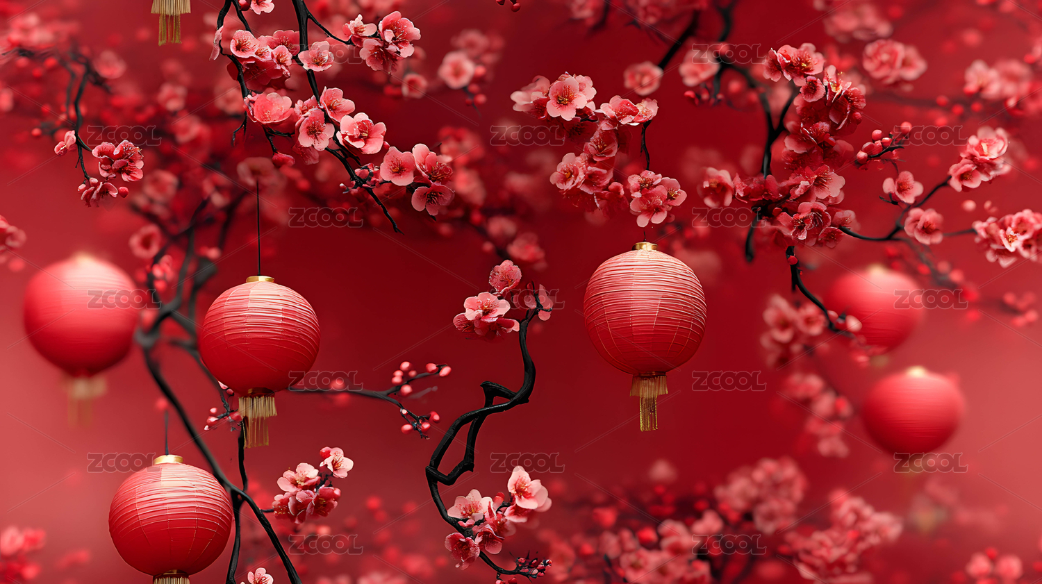 商务,春节,2025,蛇年,新年,元宵节,背景板,红底,灯笼,壁纸
