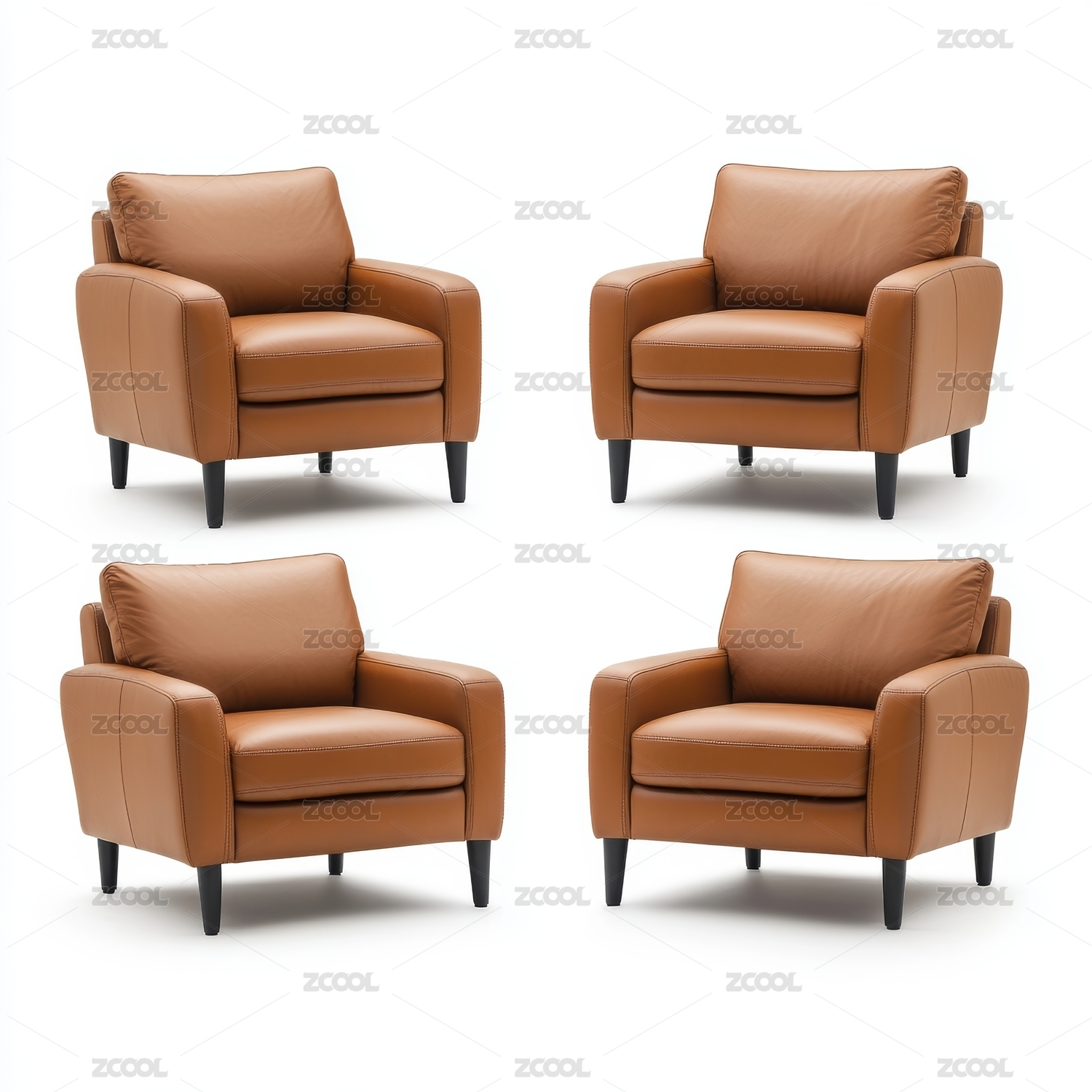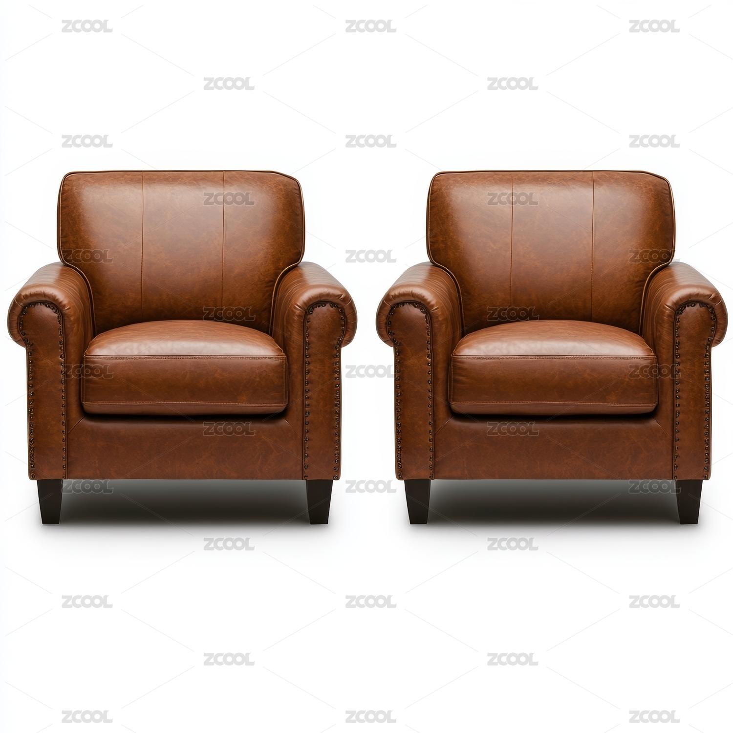 单人位皮沙发放在白色背景上