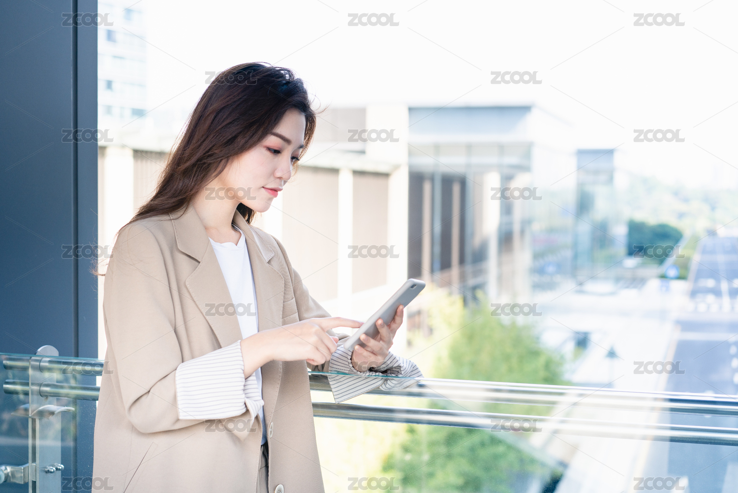 穿风衣的中国年轻职场女性形象